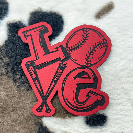 Love Baseball/Softball- 2.5" wide x 2.75" tall Leatherette Patch