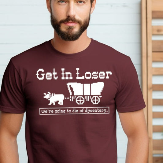 Get in Loser, We're Going to Die of Dysentery- Single Color (white)- 11" wide Plastisol Screen Print Transfer
