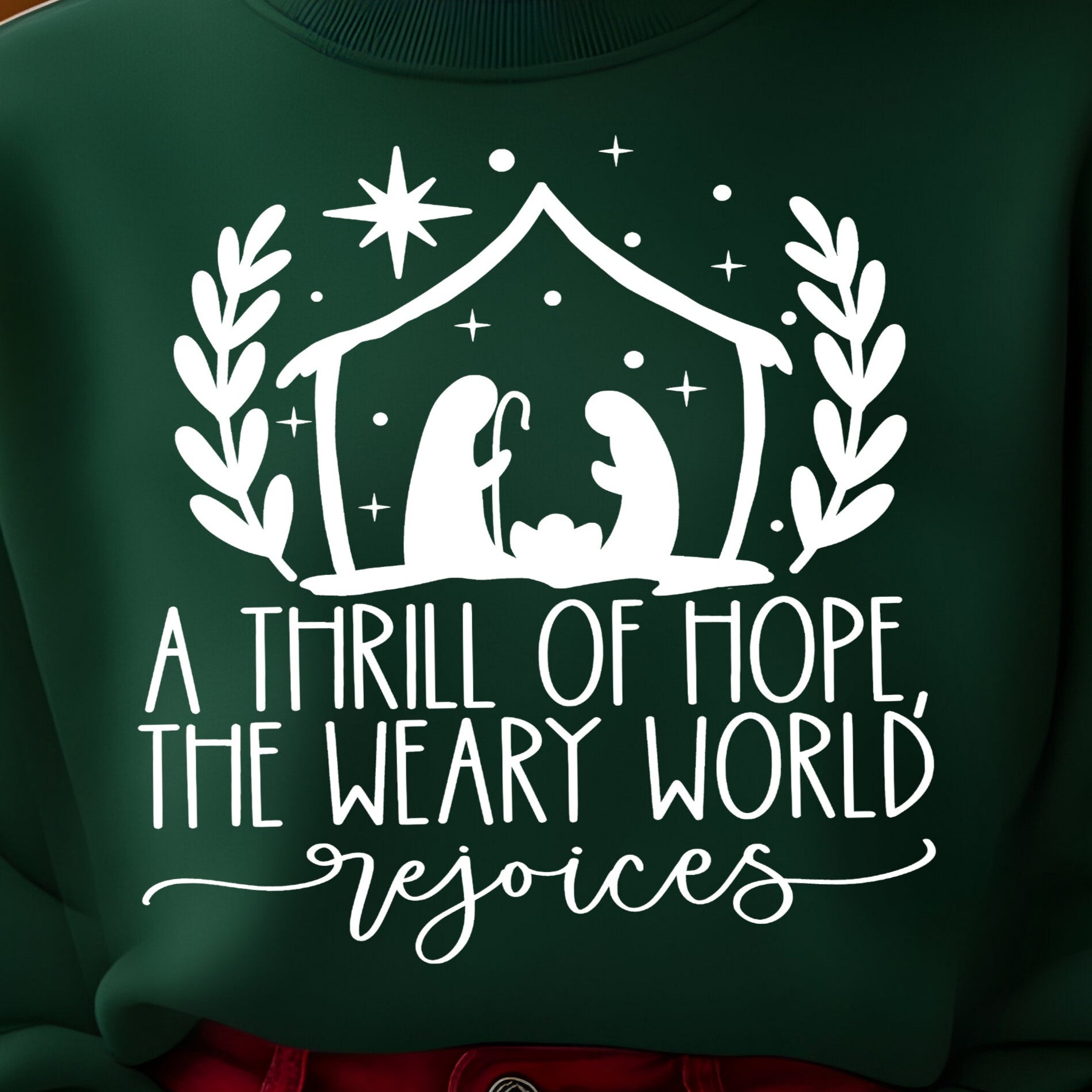 A Thrill of Hope, the Weary World Rejoices- Single Color (white)- 11.5" wide Plastisol Screen Print Transfer
