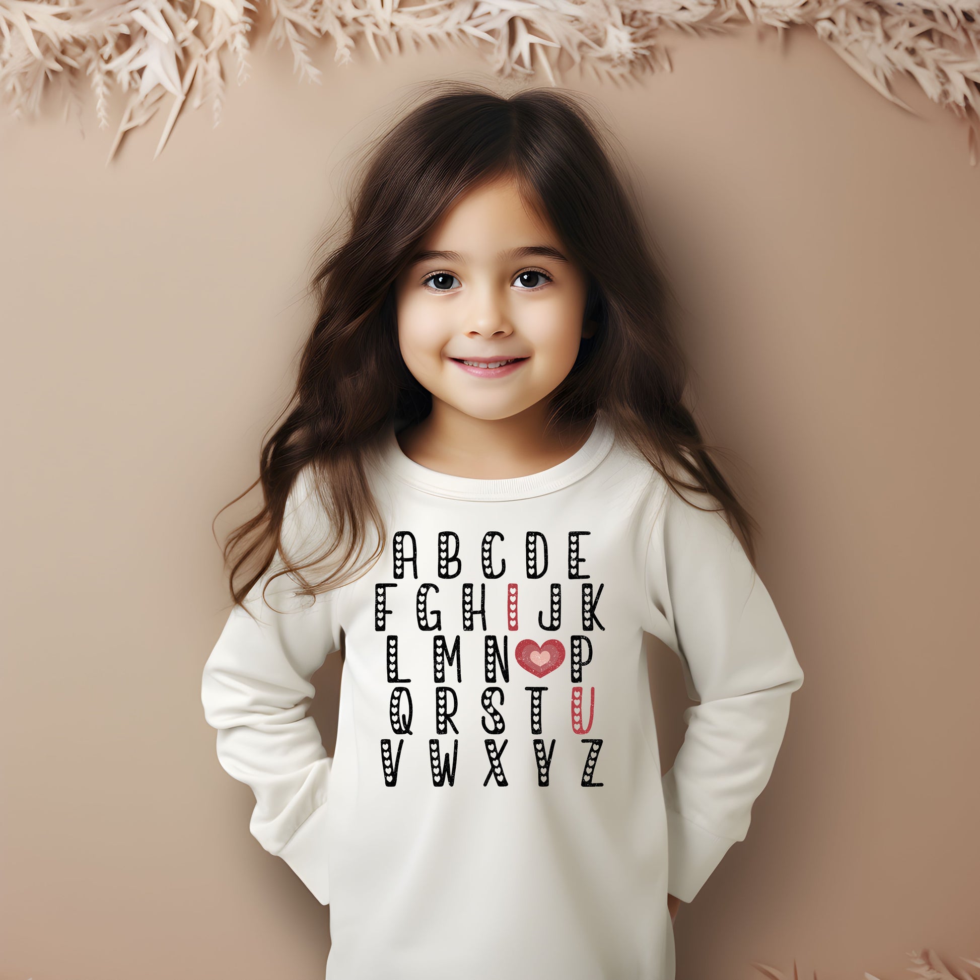 ABCDE…I love You (toddler)- *full color matte clear film*- 6.5" wide Plastisol Screen Print Transfer