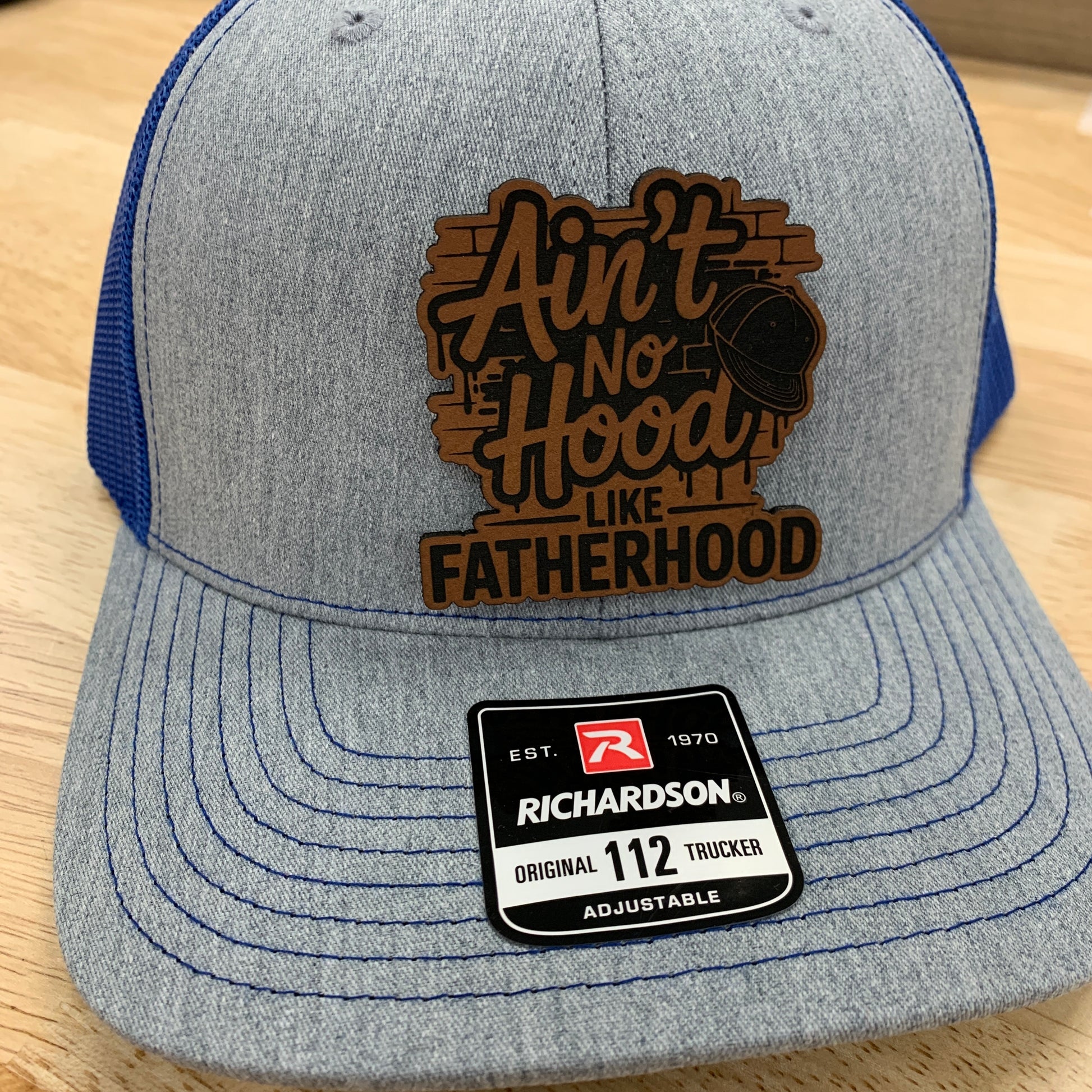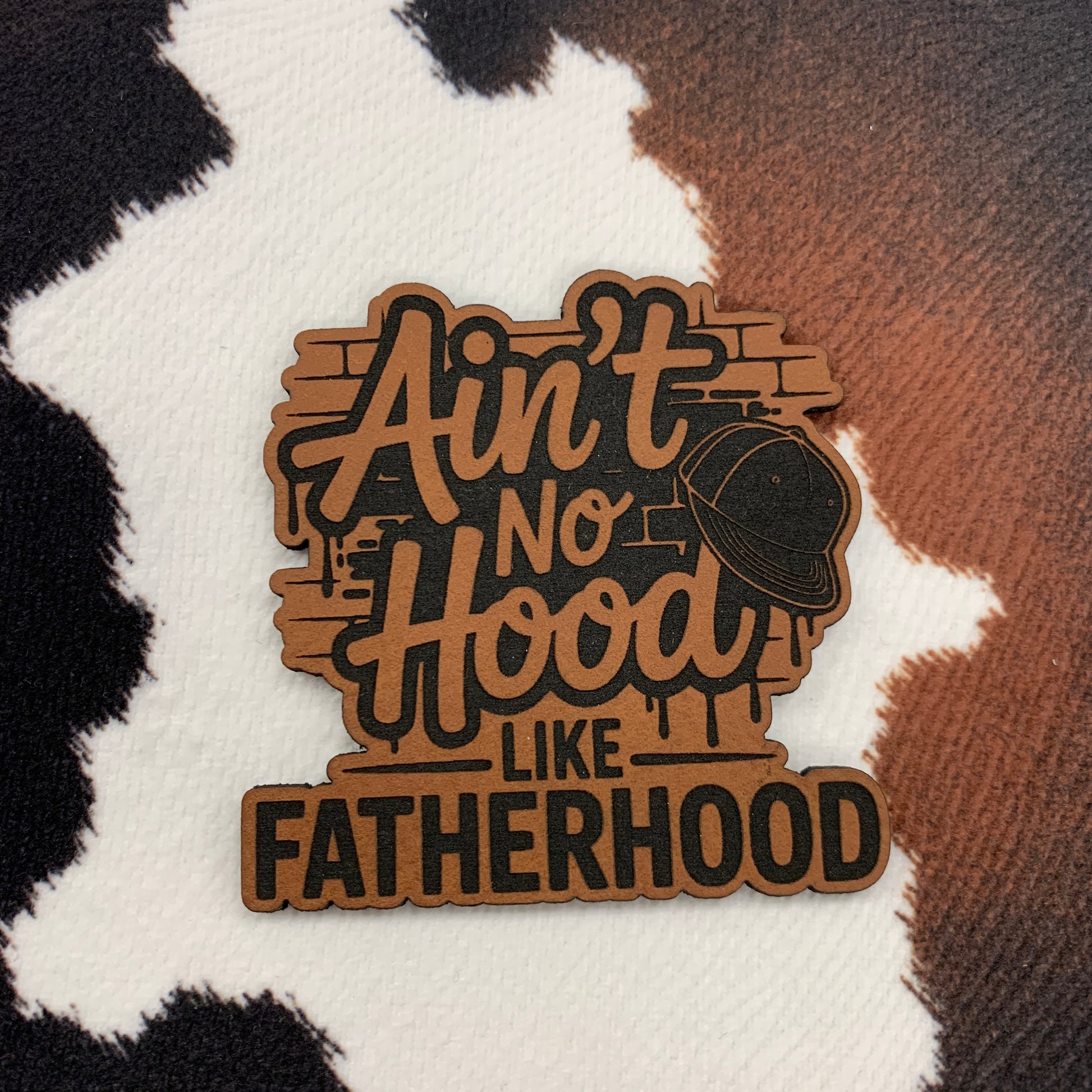 Ain't No Hood Like Fatherhood- 2.3" wide x 2.3" tall Leatherette Patch