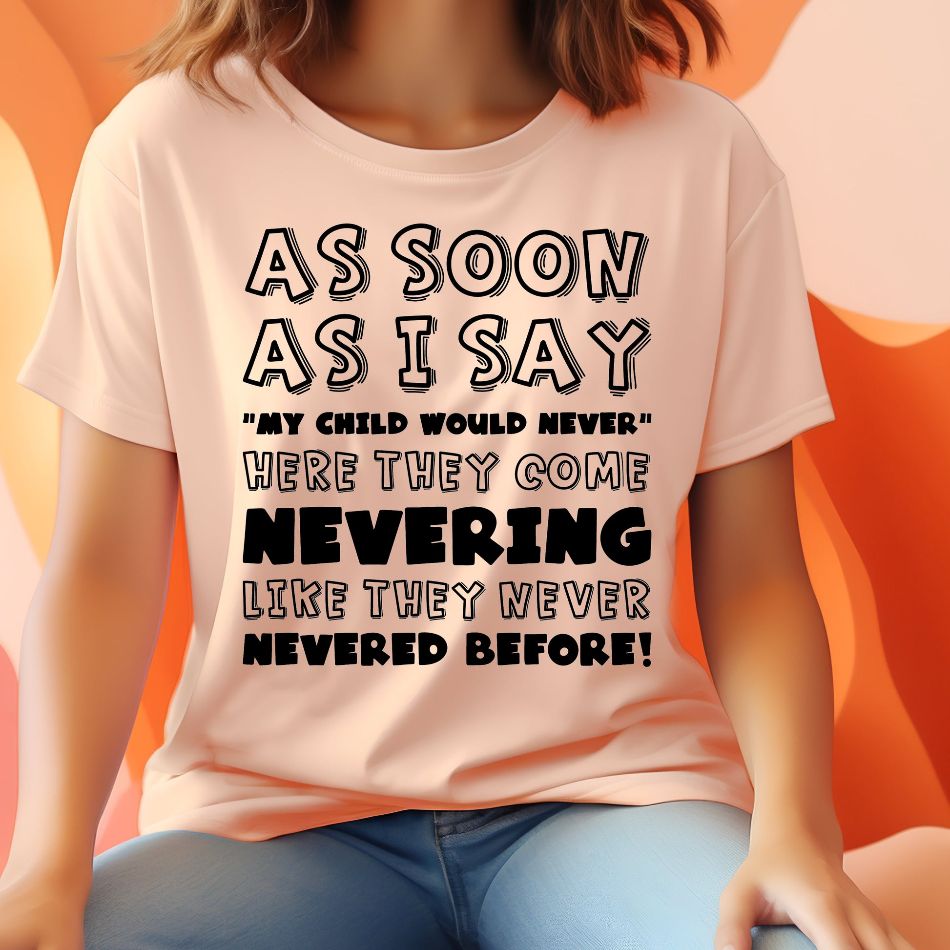 As Soon As I Say "My Child Would Never", Here They Come Nevering Like They Never Nevered Before- Single Color (black)- 11.5" wide Plastisol Screen Print Transfer