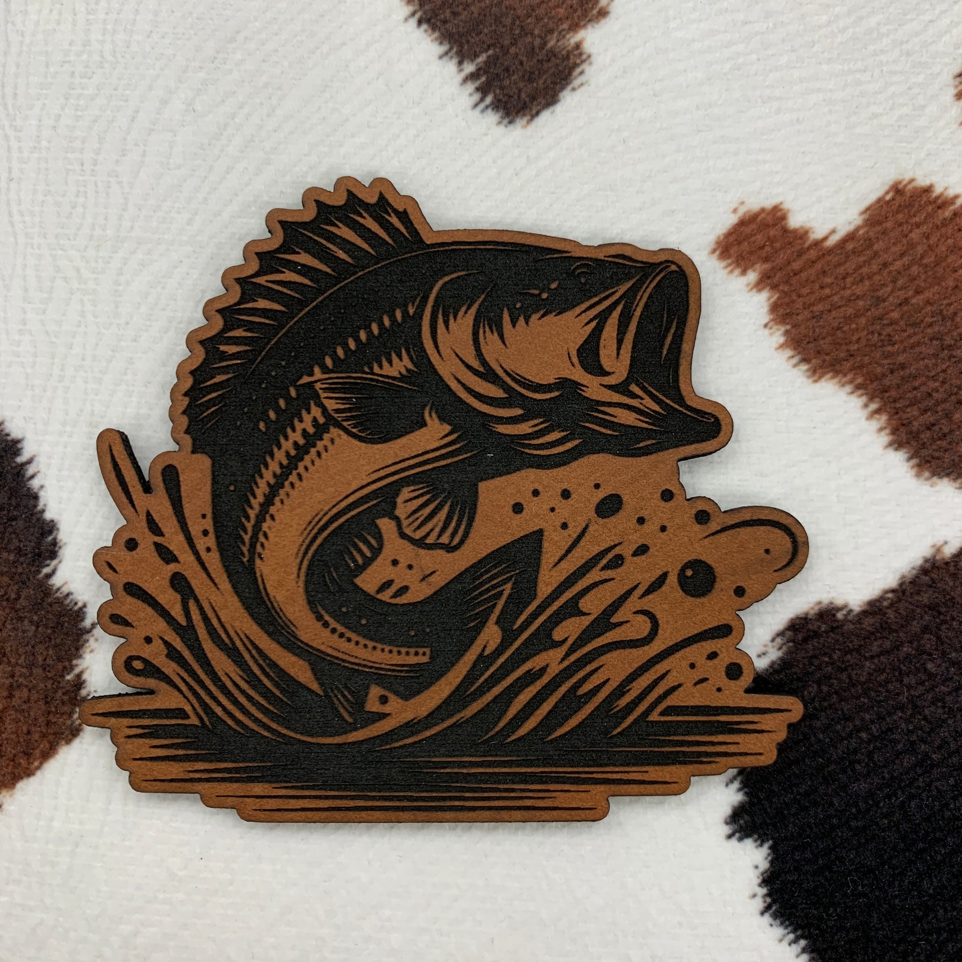Bass Jumping Out of the Water- 2.5" wide x 2.4" tall Leatherette Patch