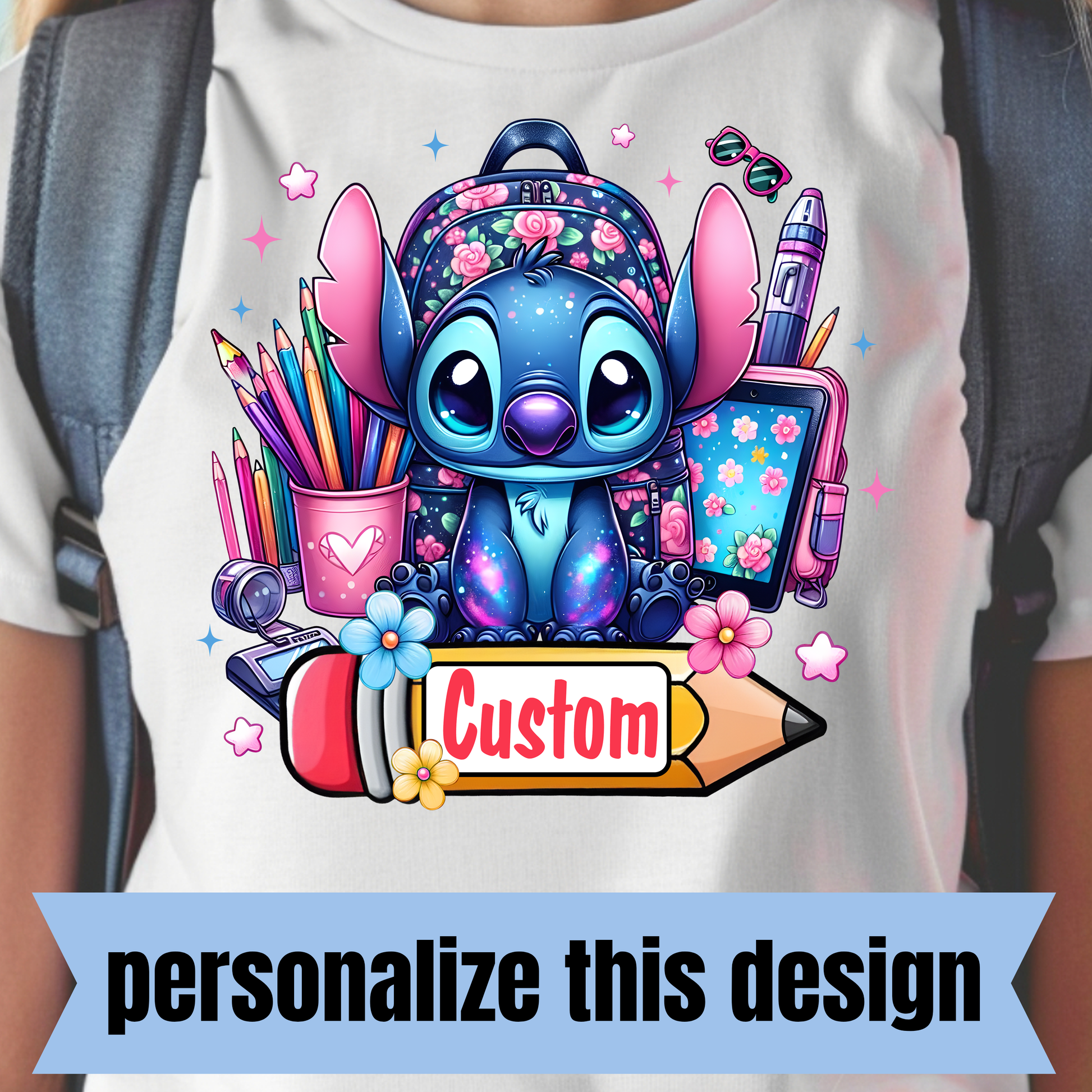 **PREORDER** Blue Alien Back to School Girl- Personalized DTF