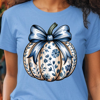 Blue Floral Pumpkin- 11” wide DTF Transfer
