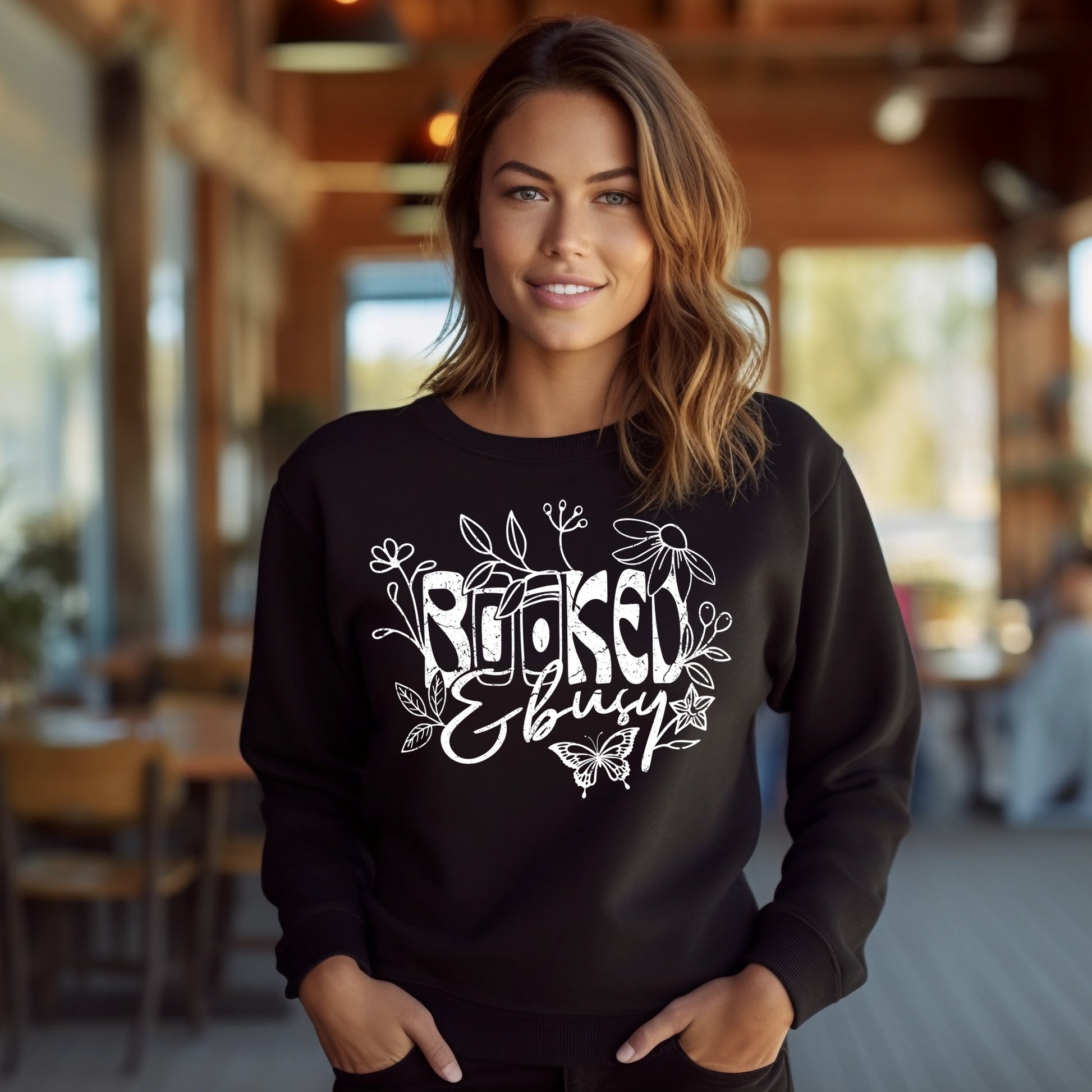 Booked & Busy- Single Color (white)- 11.5" wide Plastisol Screen Print Transfer