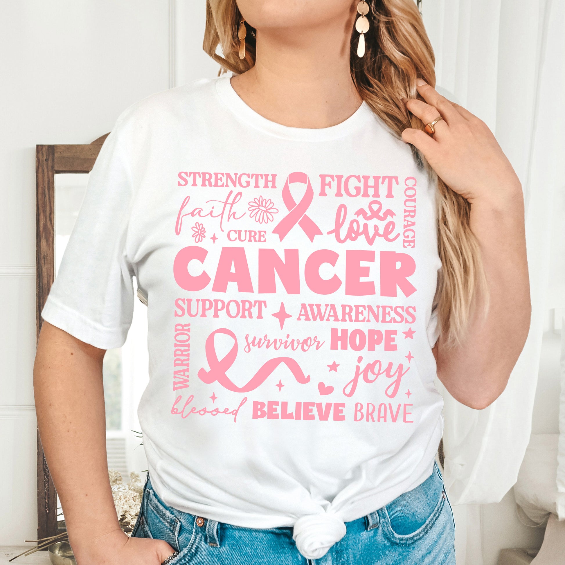 Breast Cancer Word Collage - Single Color (pink)- 11.5" wide Plastisol Screen Print Transfer