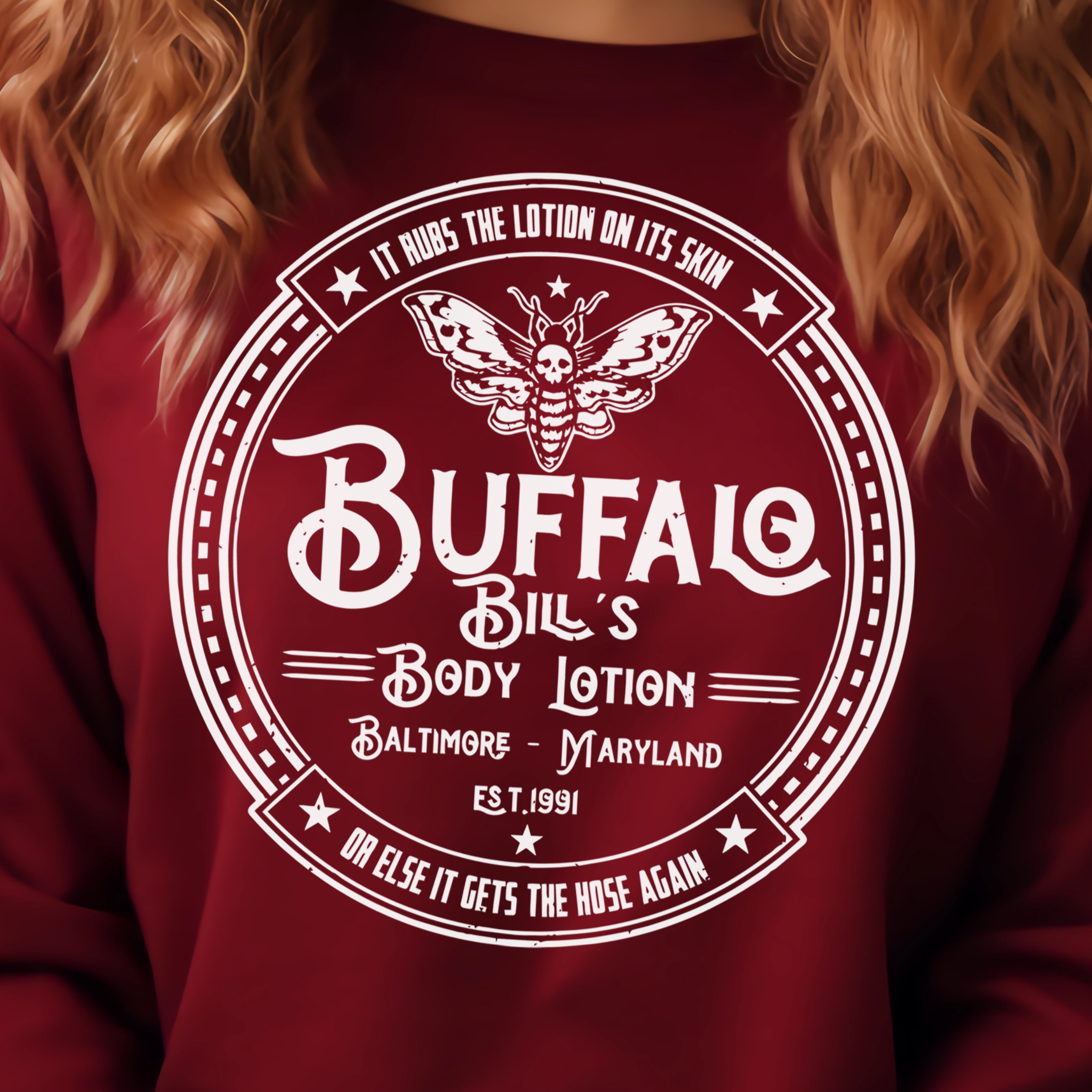 Buffalo Bill's Body Lotion- Single Color (white)- 11.5" wide Plastisol Screen Print Transfer
