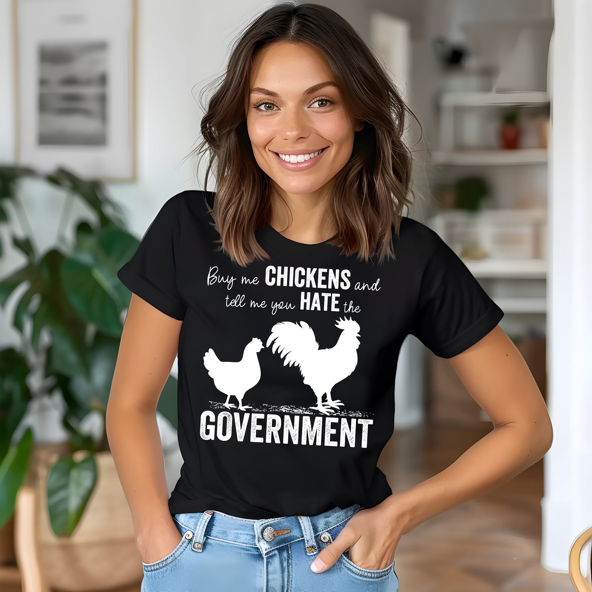 Buy Me Chickens and Tell Me You Hate the Government- Single Color (white)- 11.5" wide Plastisol Screen Print Transfer