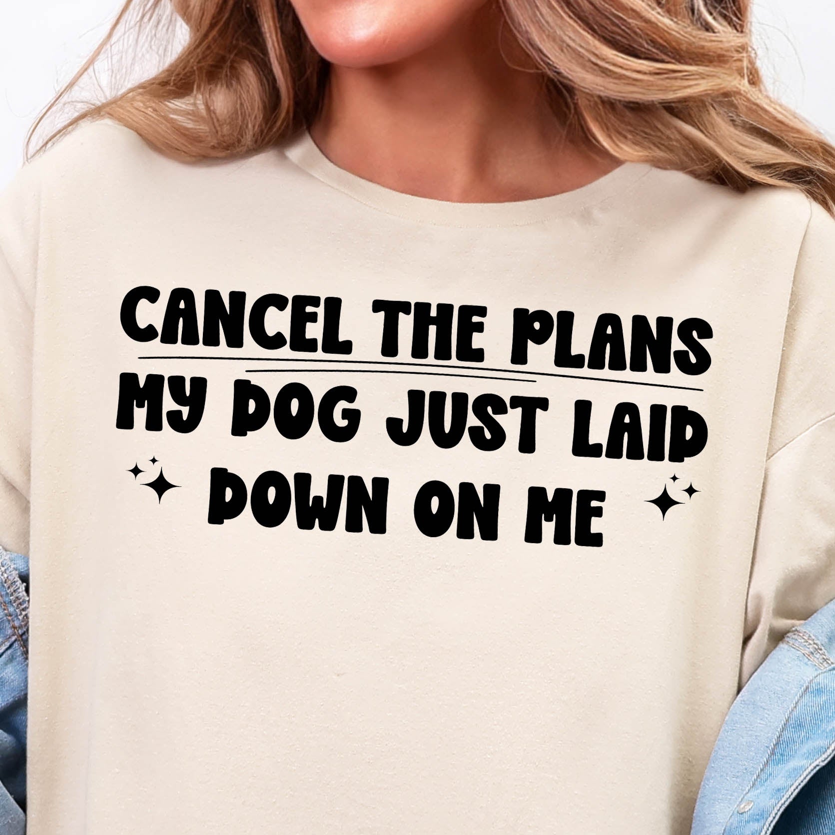 Cancel the Plans, My Dog Just Laid Down on Me- Single Color (black)- 11.5” wide Screen Print Transfer