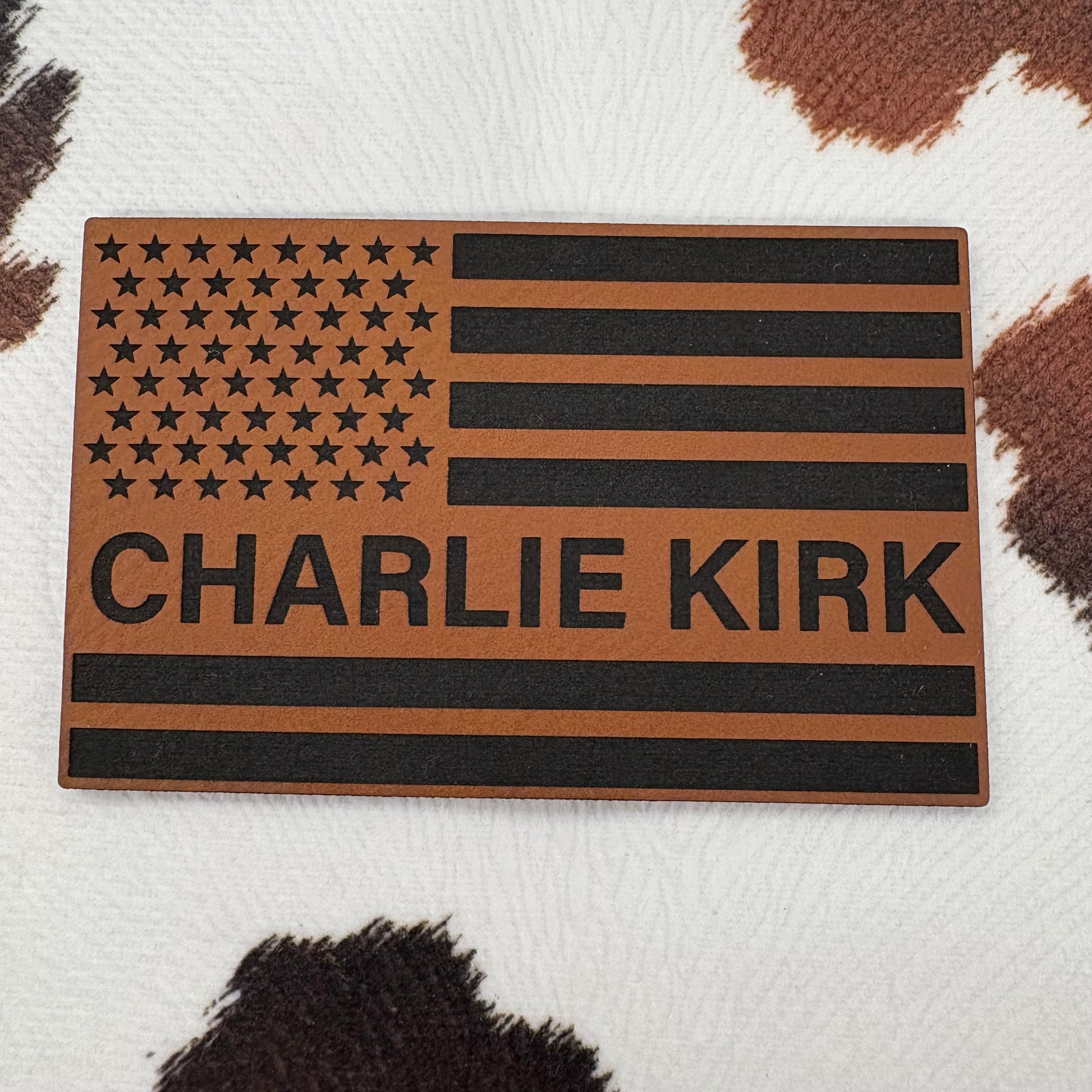 Charlie Kirk Flag- 3.25" wide x 2" tall Leatherette Patch
