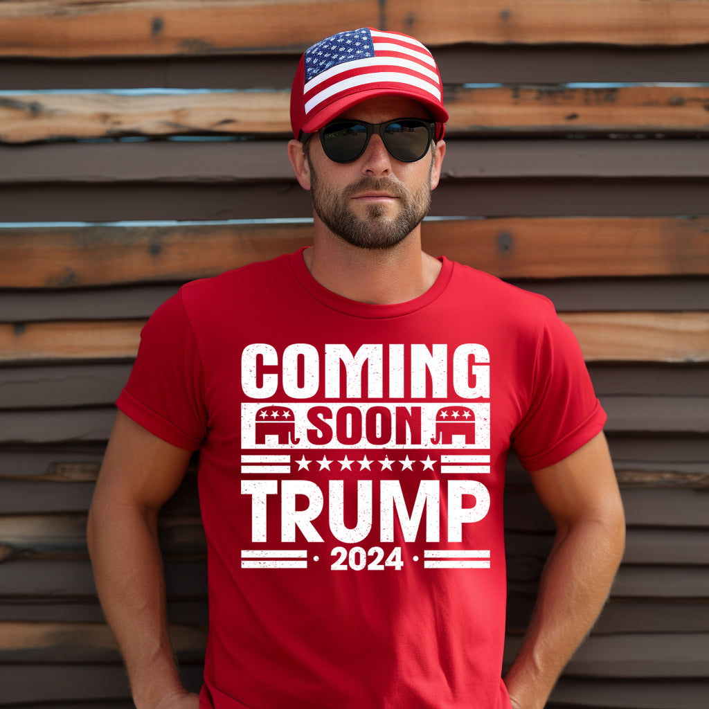 Coming Soon, Trump 2024- Single Color (white)- 11.5" wide Plastisol Screen Print Transfer