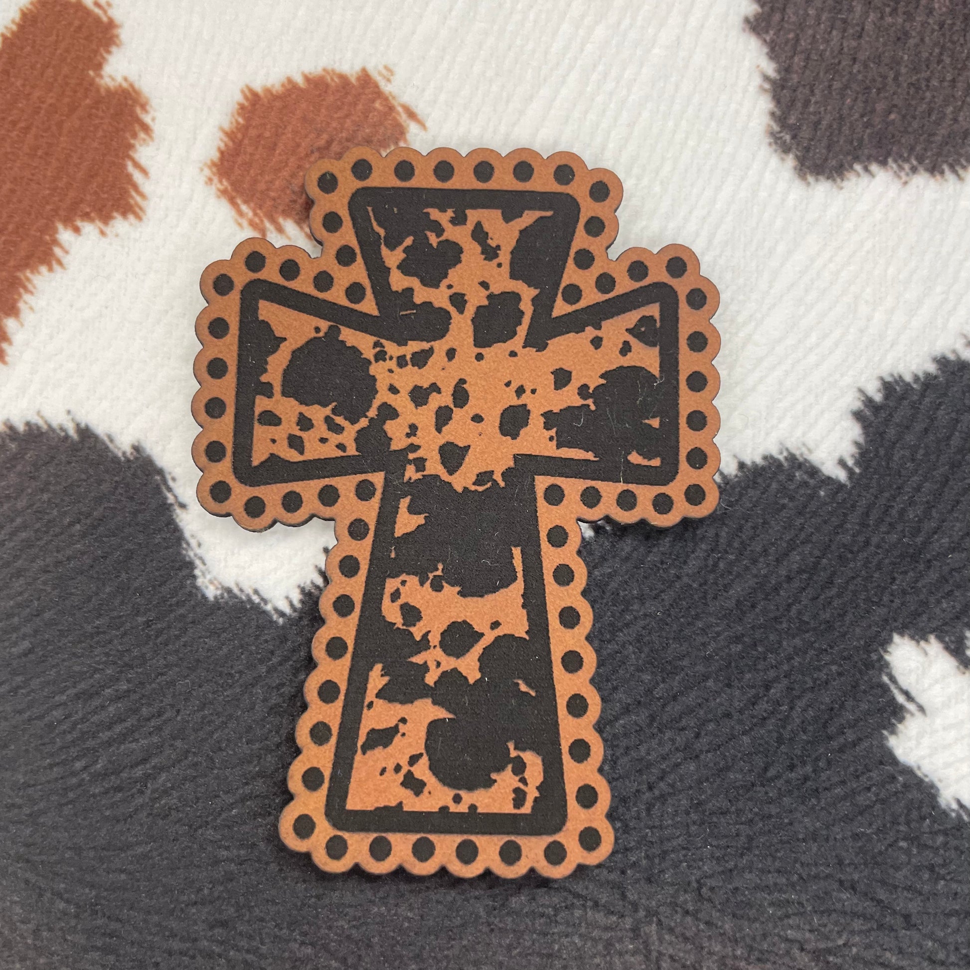 Cow Cross- 1.8" wide x 2.5" tall Leatherette Patch