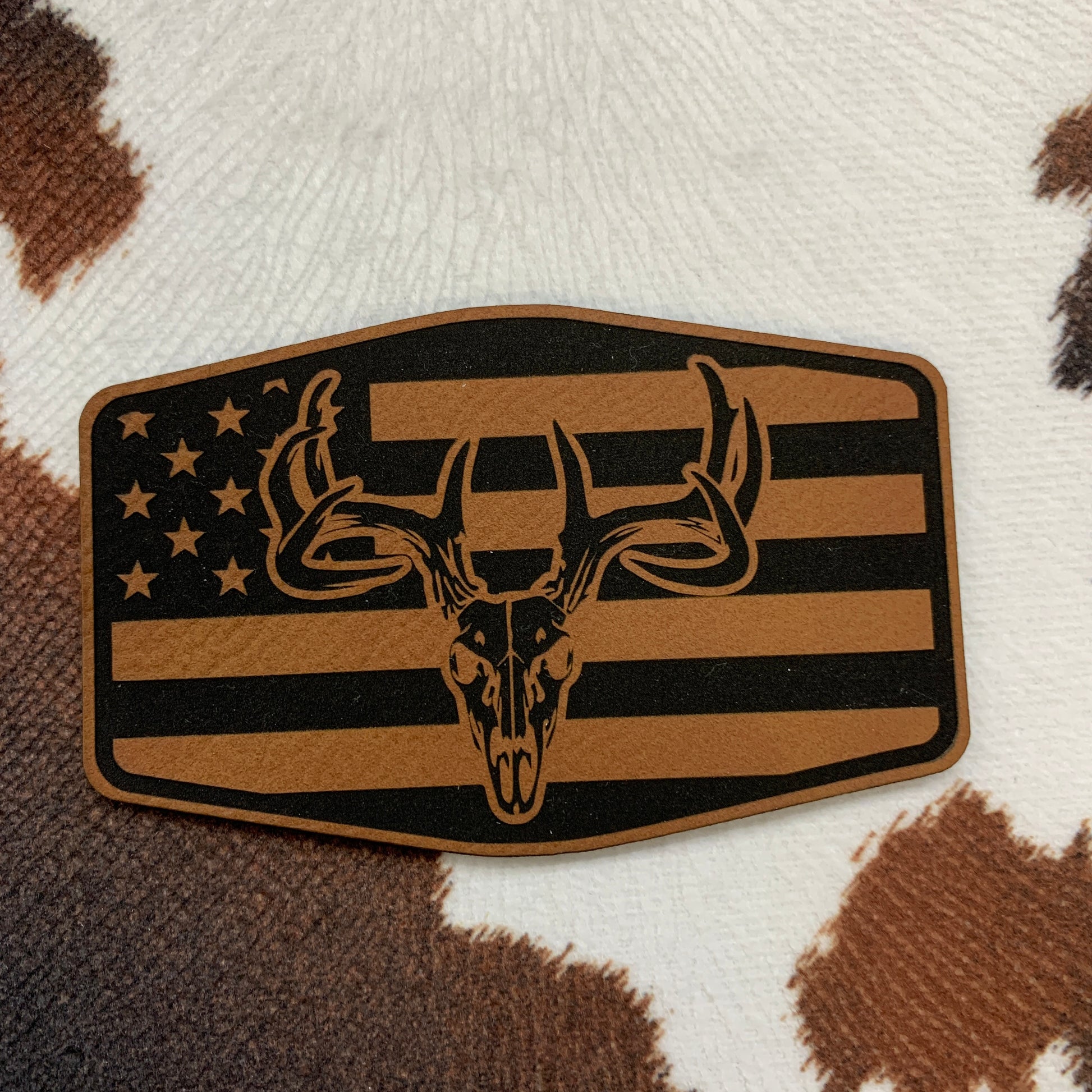 Deer Flag Buckle- 3.25" wide x 2" tall Leatherette Patch