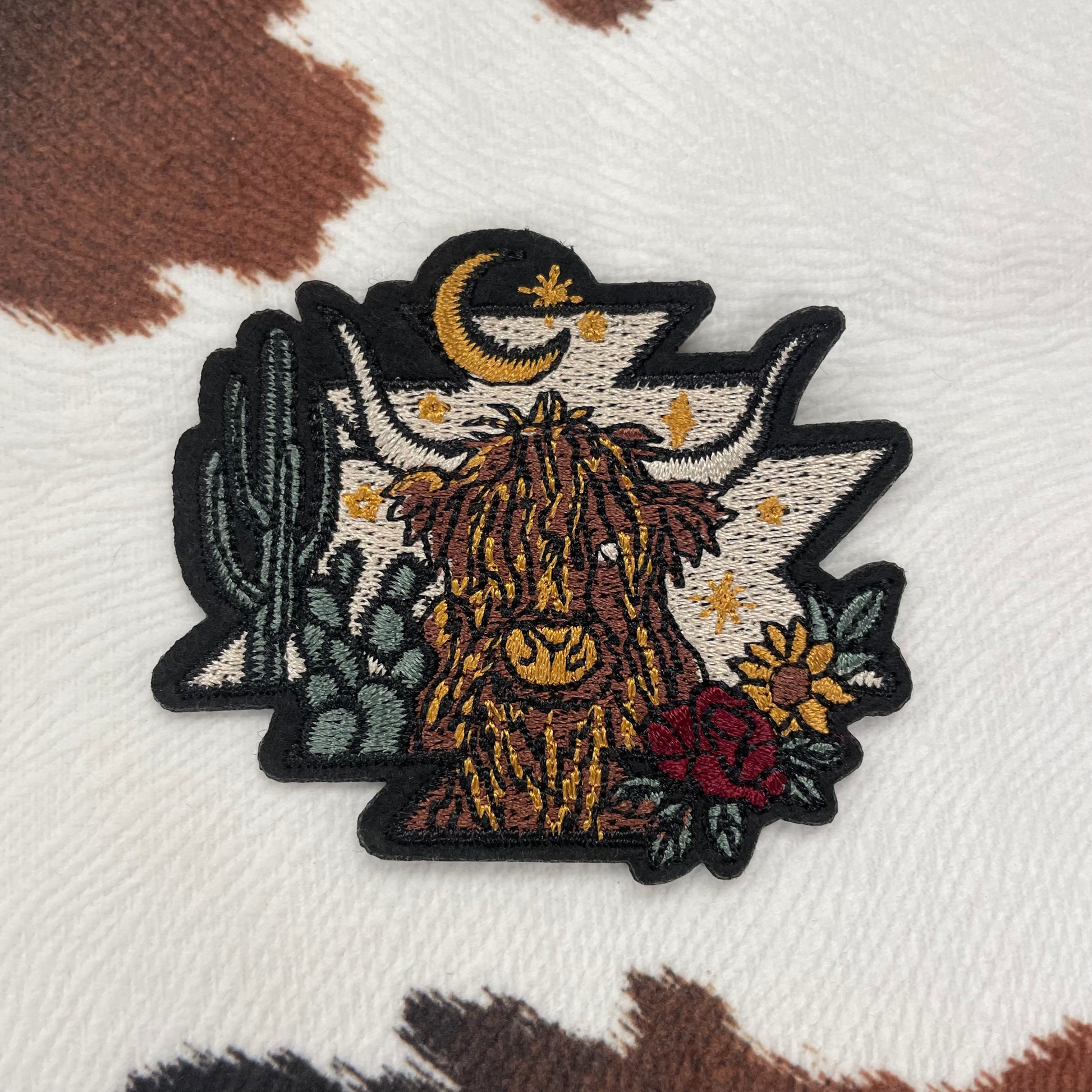 Desert Highland Cow- 2.7" wide Embroidery Patch
