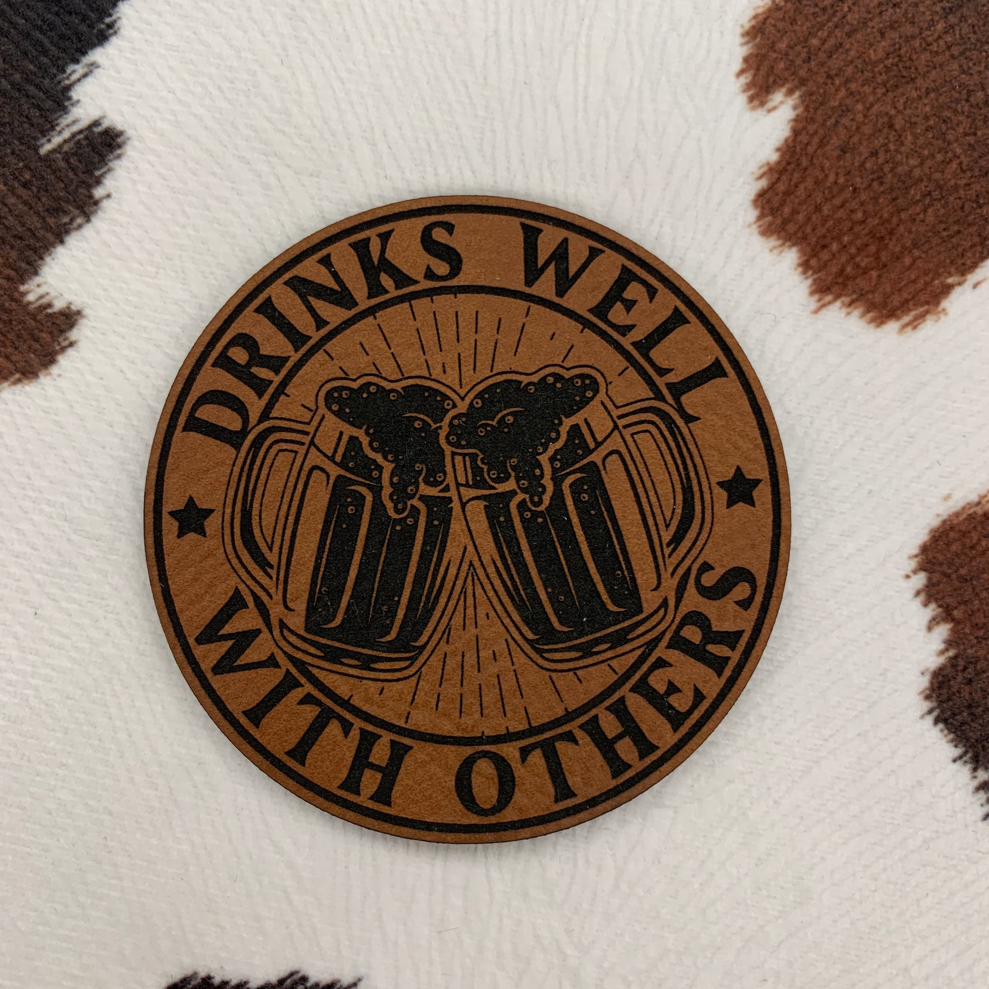 Drinks Well With Others- 2.5" round Leatherette Patch