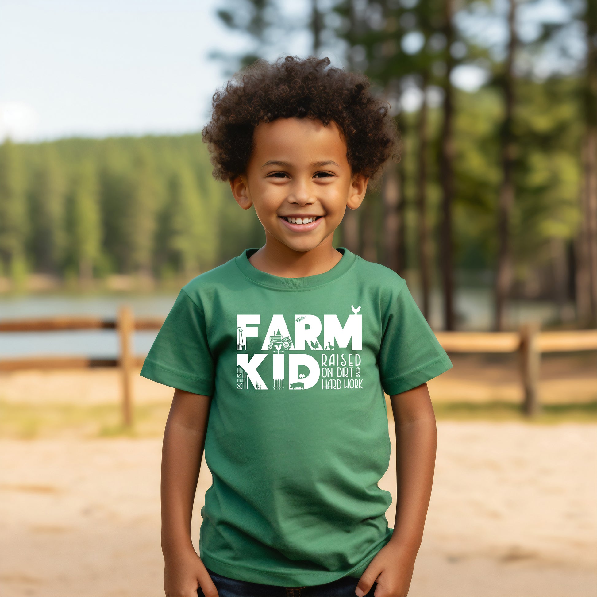 Farm Kid-Raised on Dirt & Hard Work (Toddler)- Single Color (white)- 7" wide Plastisol Screen Print Transfer