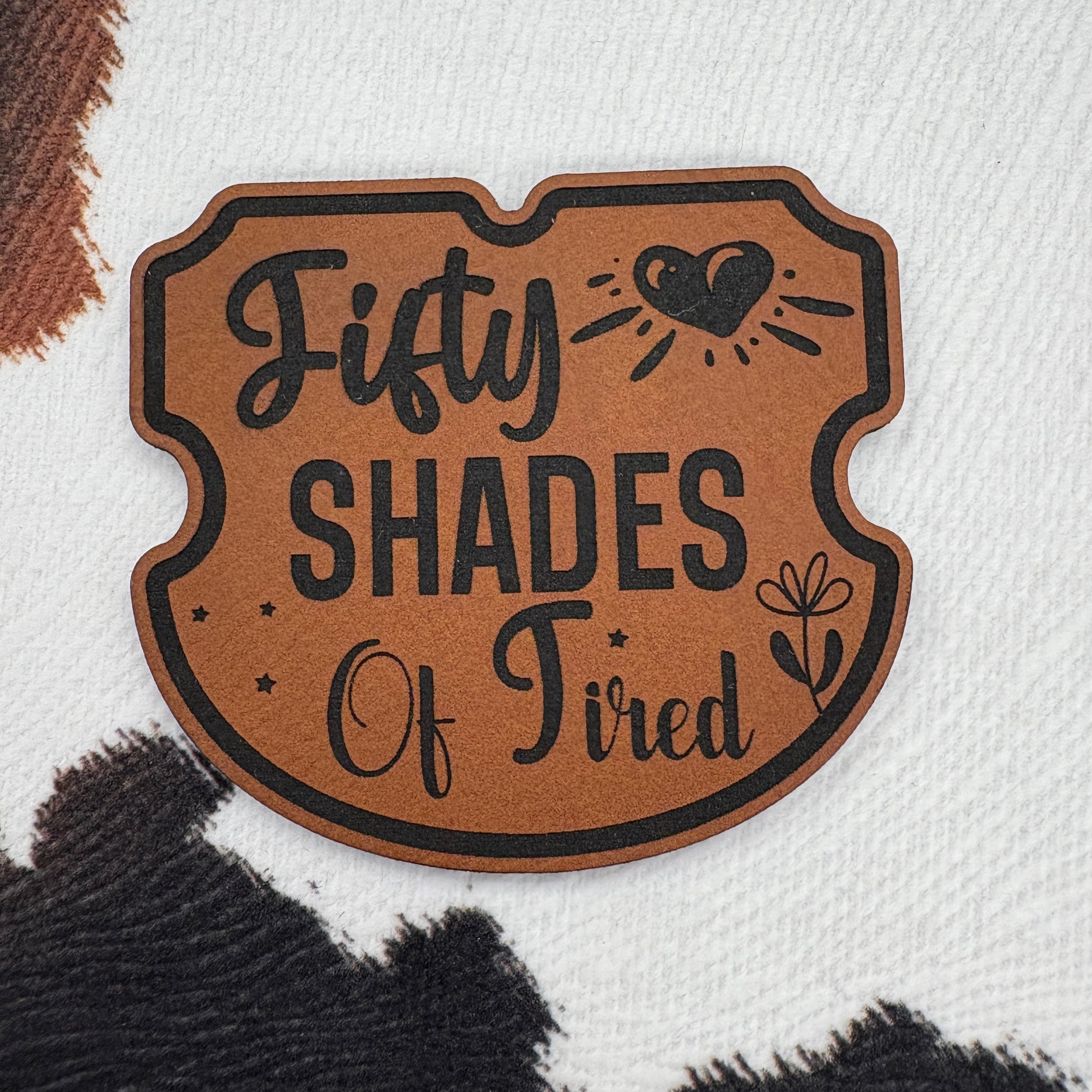 Fifty Shades of Tired- 3.2” wide x 2.4” tall Leatherette Patch