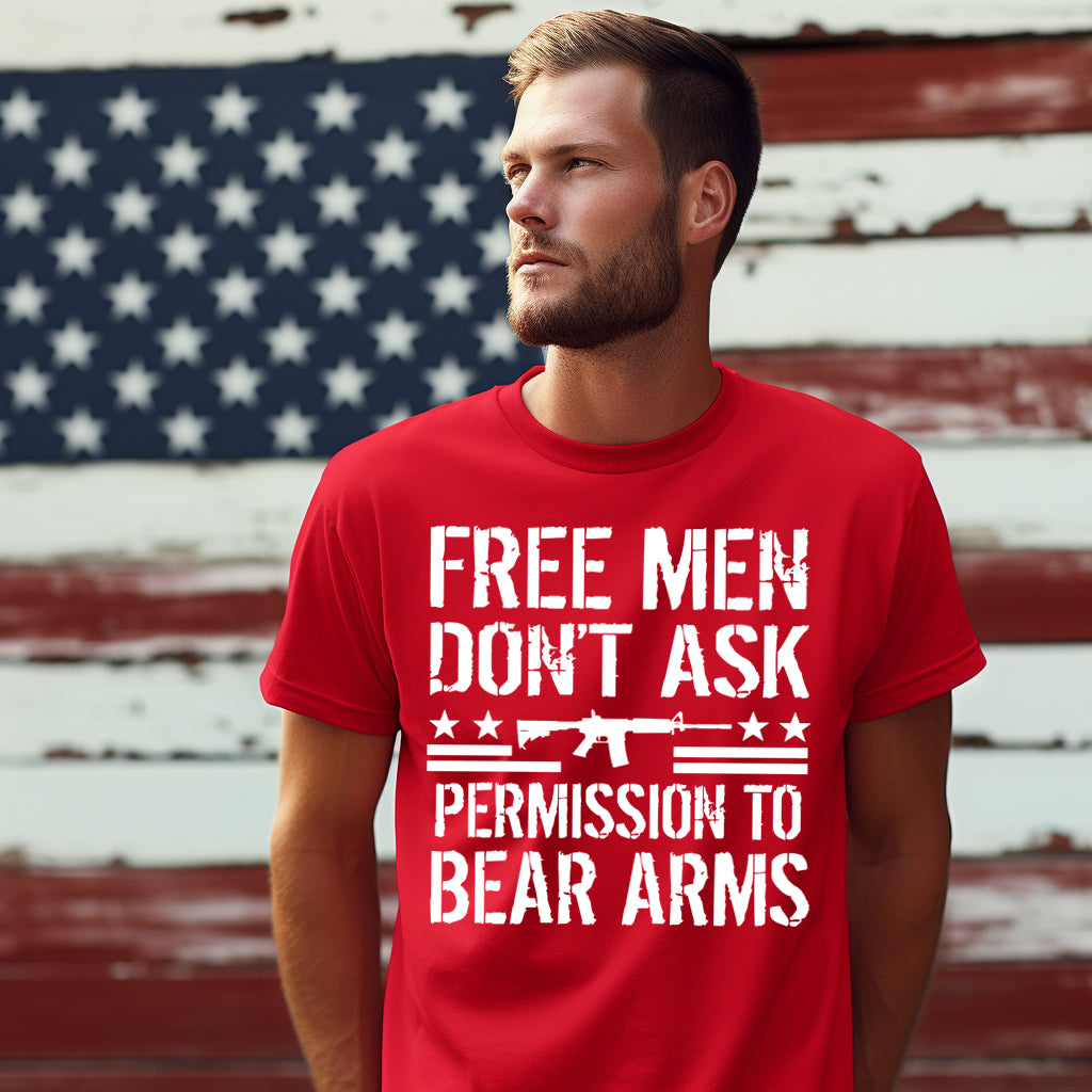 Free Men Don't Ask Permission to Bear Arms- Single Color (white)- 11.5" wide Plastisol Screen Print Transfer