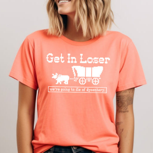 Get in Loser, We're Going to Die of Dysentery- Single Color (white)- 11" wide Plastisol Screen Print Transfer