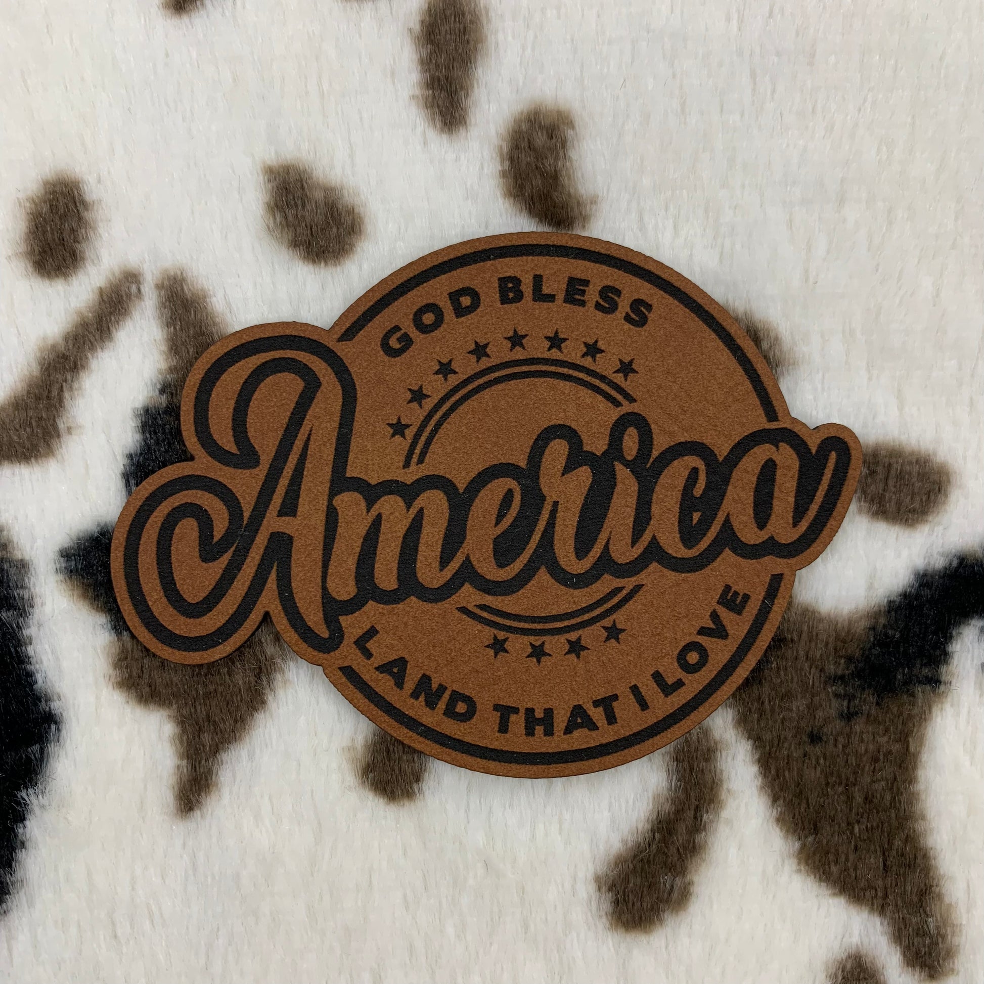 God Bless America Land that I Love- 3.11" wide x 2.3" tall Leatherette Patch