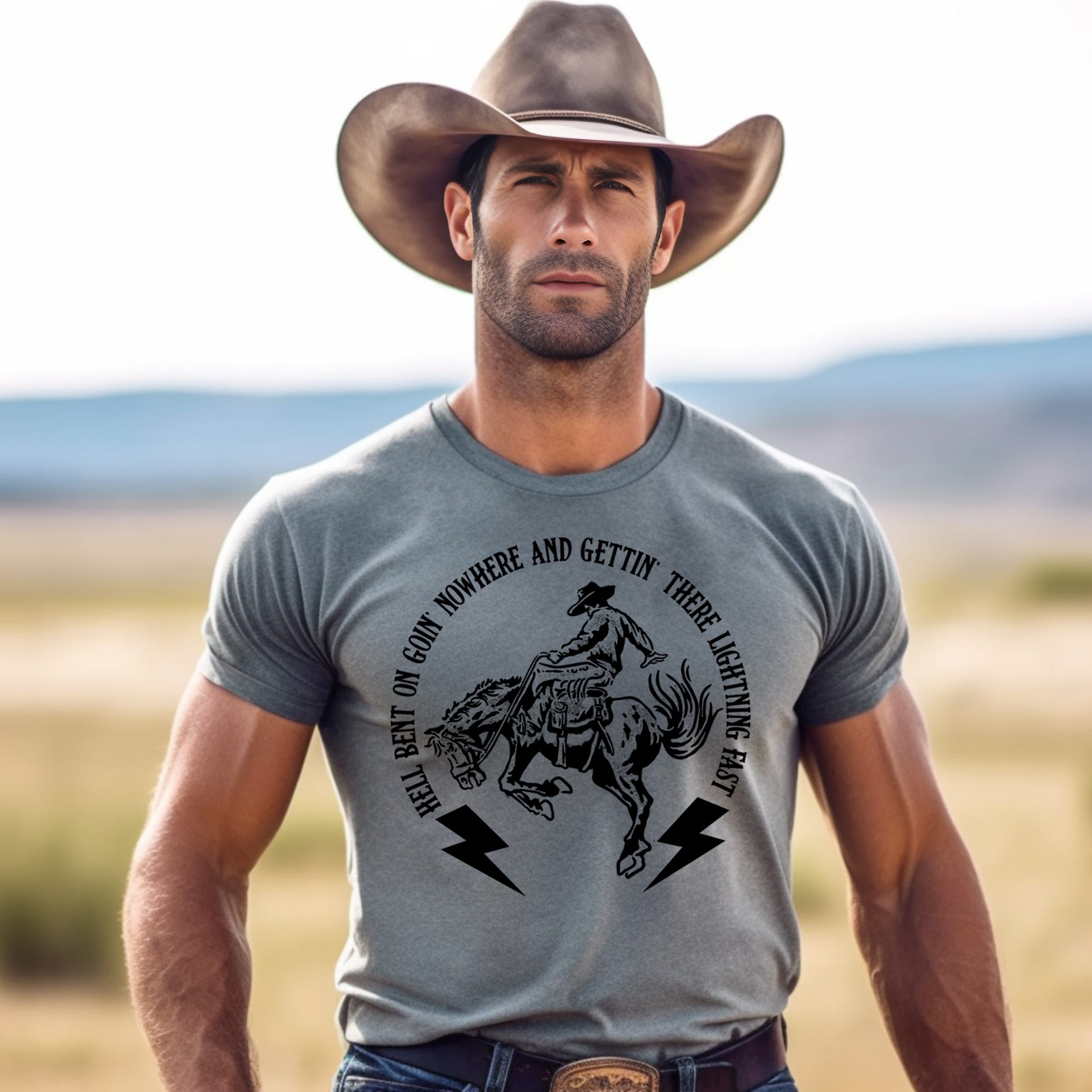 Hell Bent on Goin' Nowhere and Gettin' There Lightning Fast- Single Color (black)- 11.5" wide Plastisol Screen Print Transfer