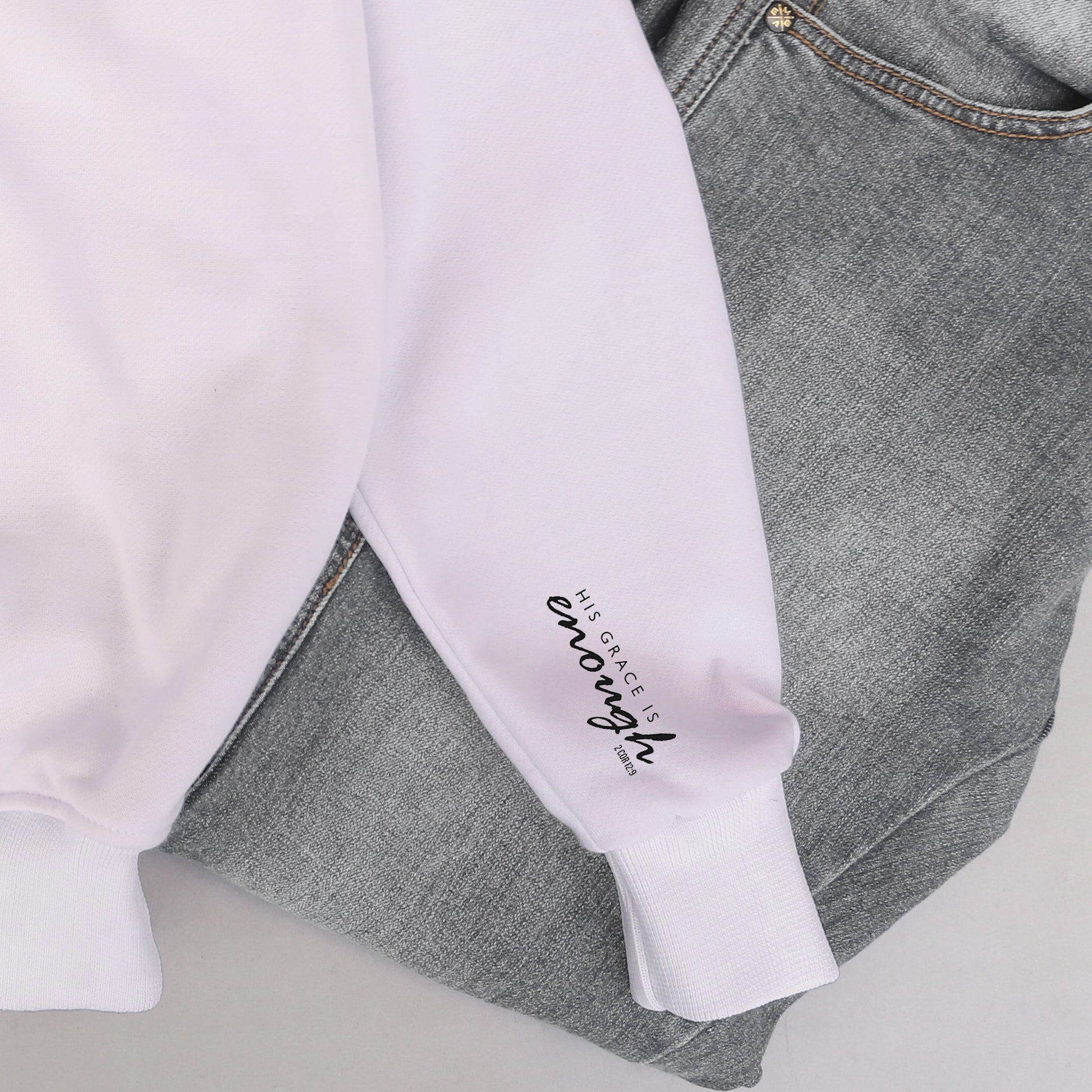 His Grace is Enough 2 Cor. 12:9 (Pocket/Sleeve)- Single Color (black)- 2" wide Plastisol Screen Print Transfer
