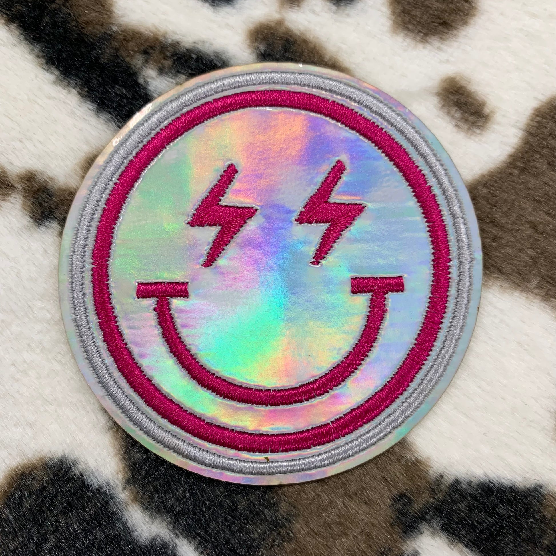 Holographic Smiley- 2.5" wide Embroidery Patch