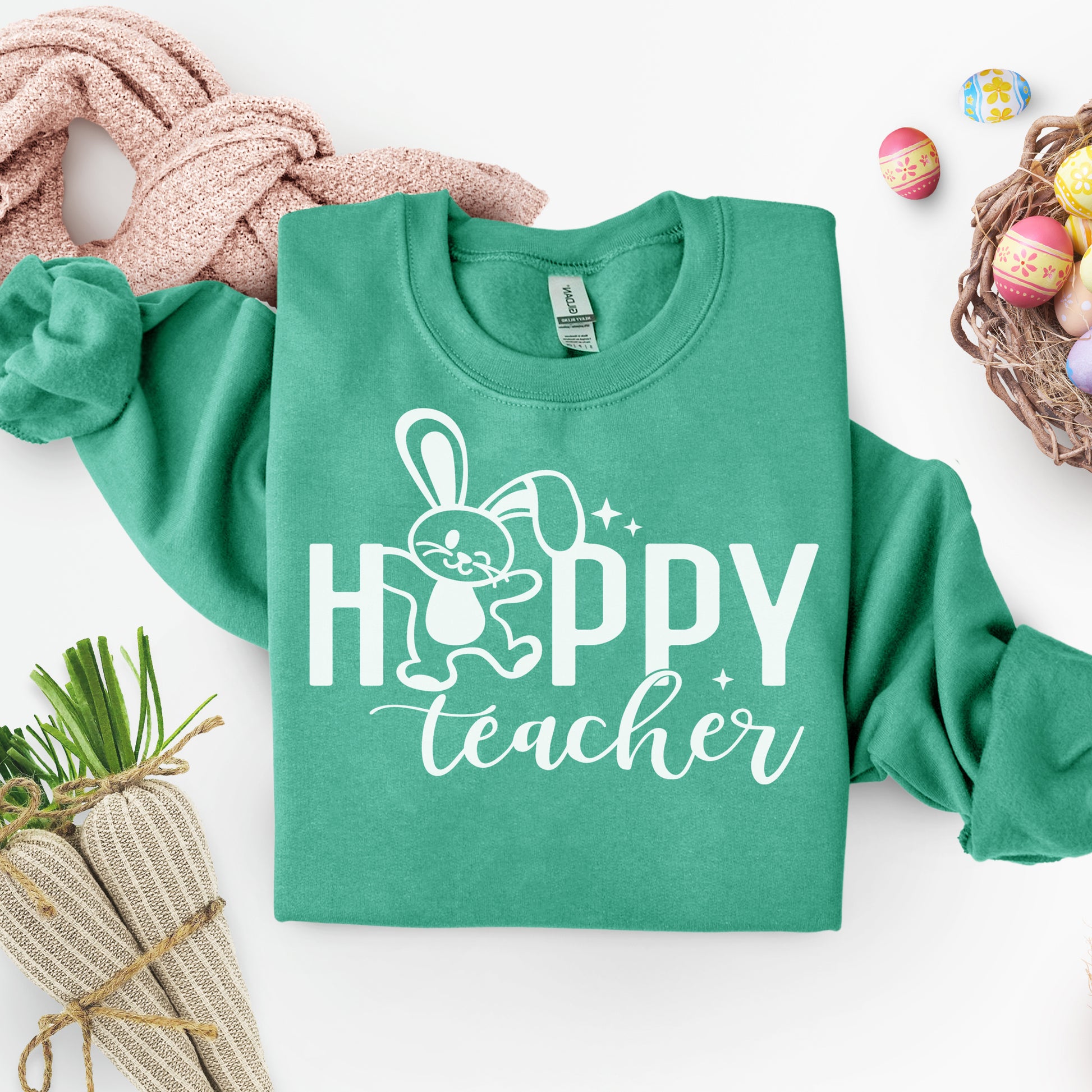 Hoppy Teacher- Single Color (white)- 11.5" Screen Print Transfer