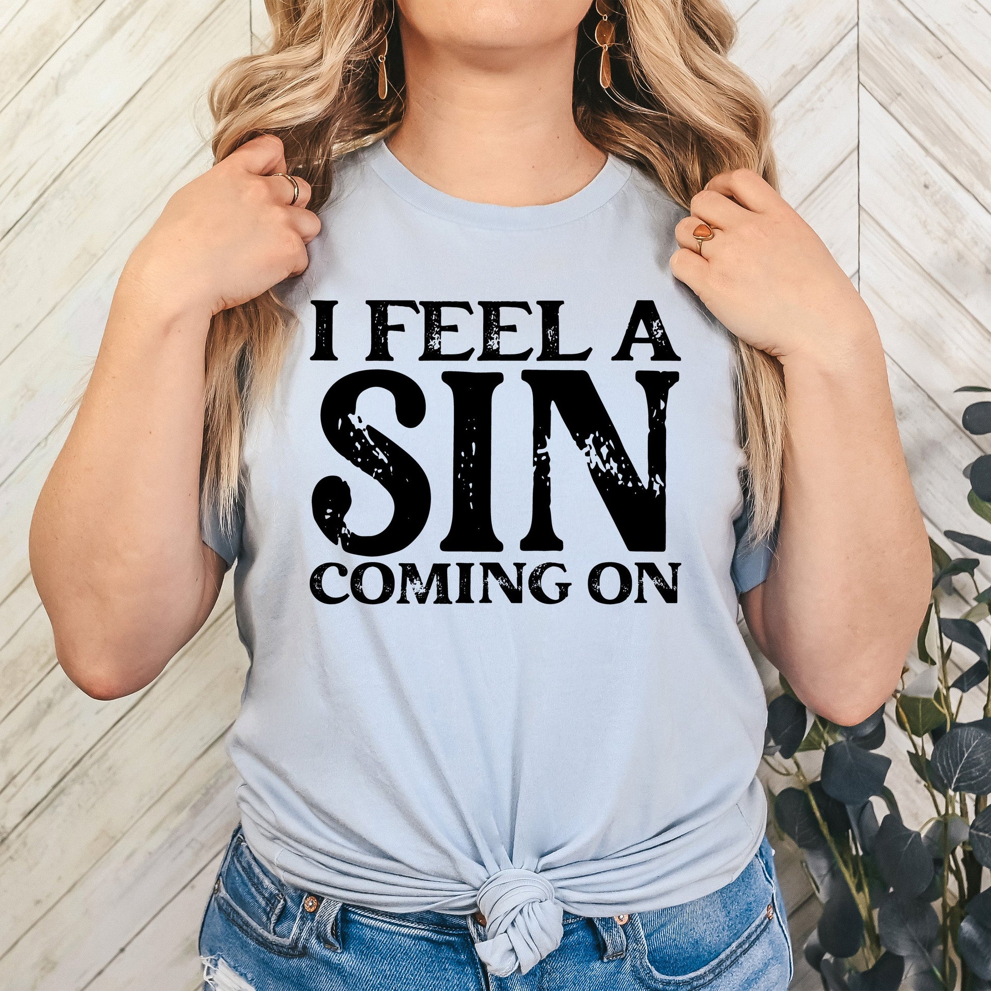 I Feel a Sin Coming On- Single Color (black)- 11" wide Plastisol Screen Print Transfer
