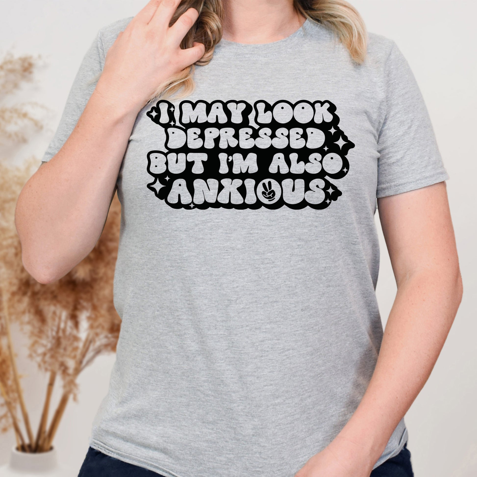 I May Look Depressed but I'm Also Anxious- Single Color (black)- 11" wide Plastisol Screen Print Transfer