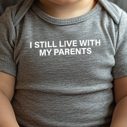 I Still Live With My Parents (infant)-Single Color (white)- 4.25” wide Single Color Transfer