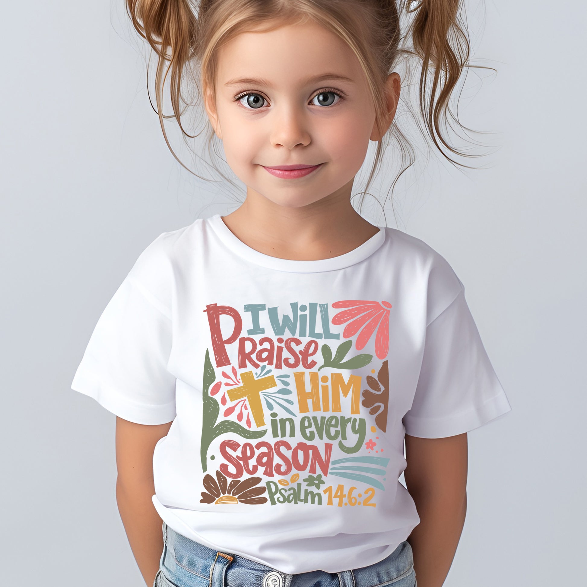 I Will Praise Him in Every Season Psalm 146:2 (toddler)- 7" wide DTF Transfer