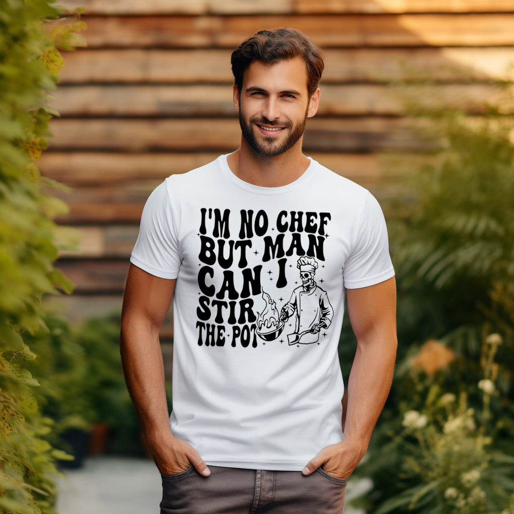 I'm No Chef but Man Can I Stir the Pot- Single Color (black)- 11.5" wide Plastisol Screen Print Transfer