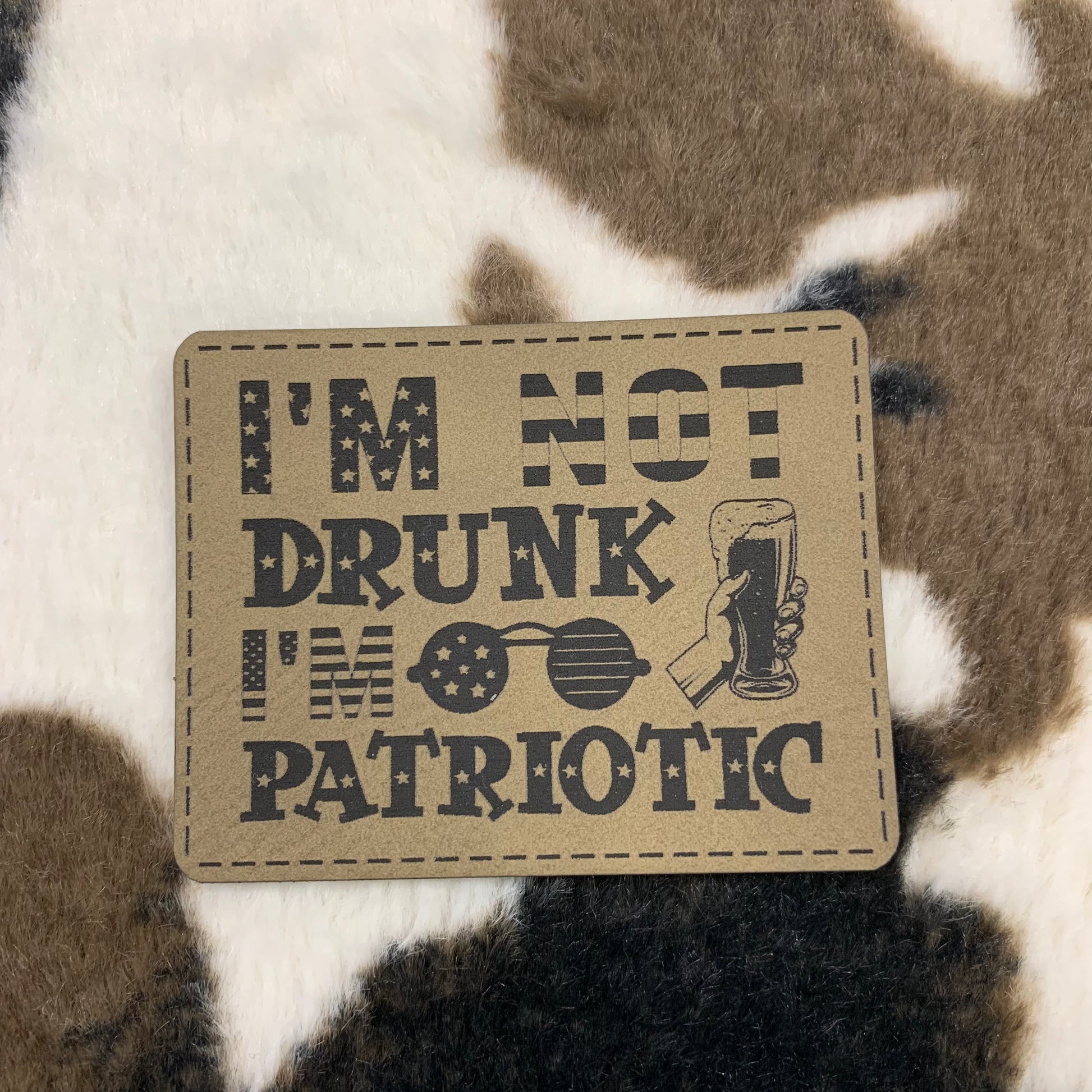 I'm Not Drunk, I'm Patriotic- 2.75" wide x 2.2" tall Leatherette Patch