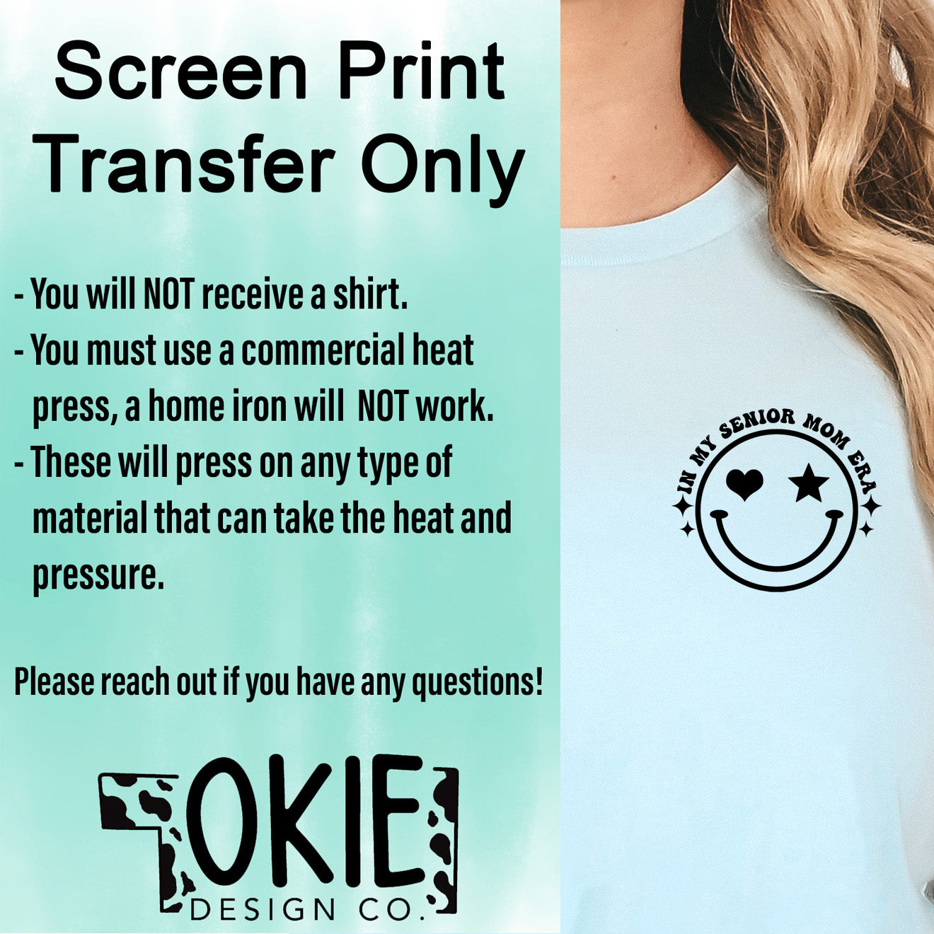 In My Senior Mom Era (Pocket/Koozie)- Single Color (black)- 3" wide Plastisol Screen Print Transfer