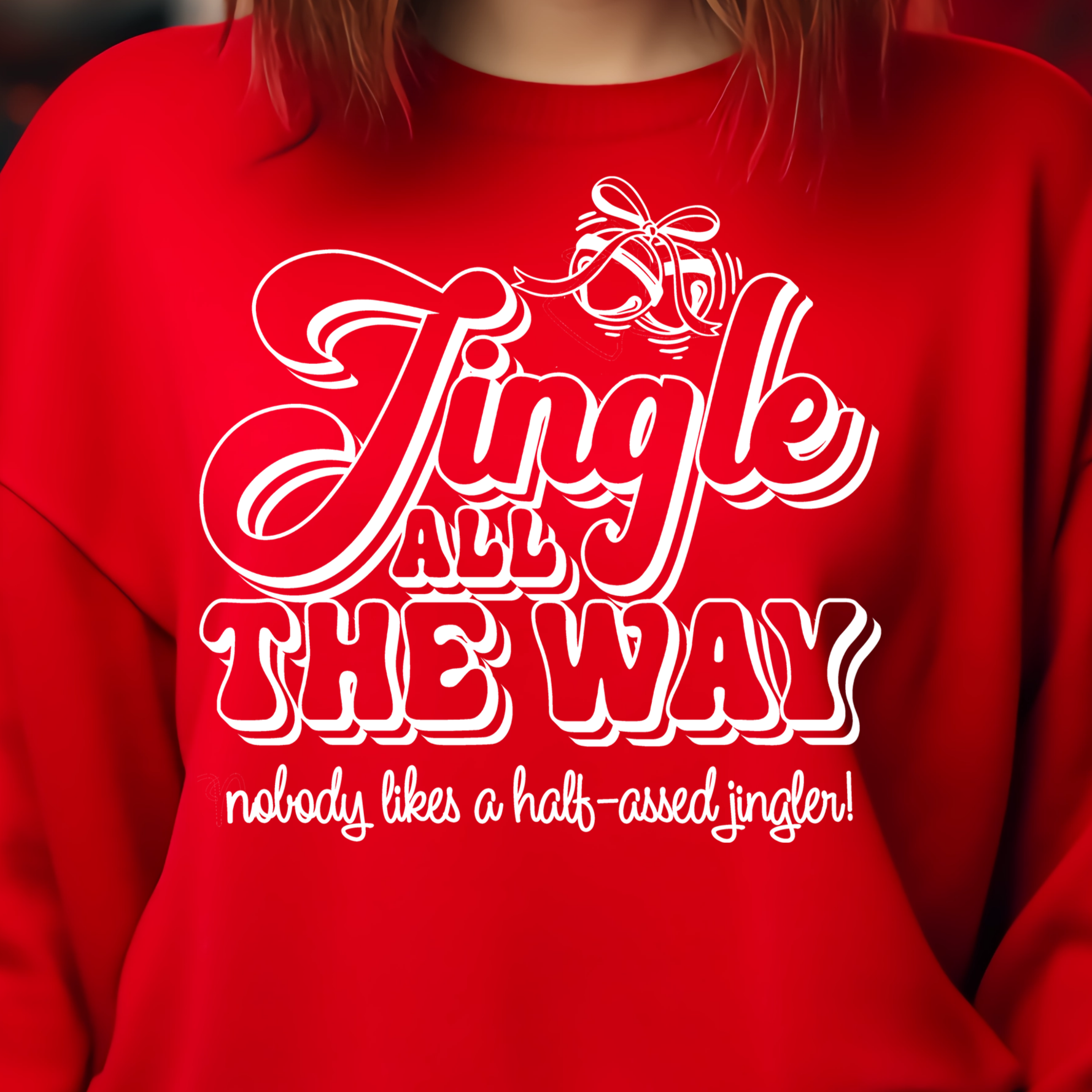 Jingle All the Way...Nobody Likes a Half-A**ed Jingler- Single Color (white)- 11.5" wide Plastisol Screen Print Transfer