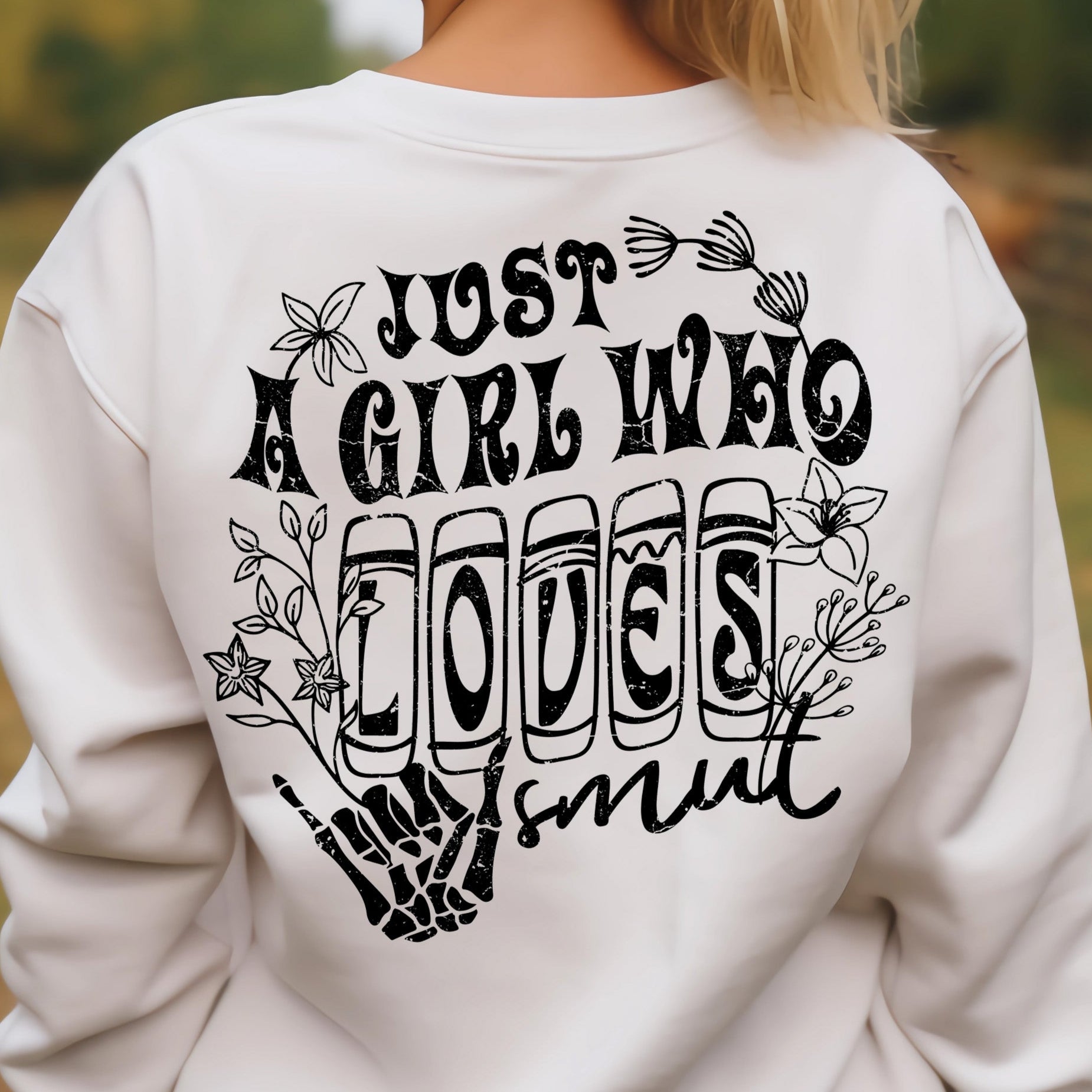 Just a Girl Who Loves Smut- Single Color (black)- 11.5" wide Plastisol Screen Print Transfer