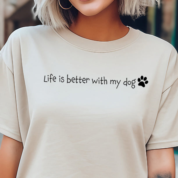 Life Is Better With My Dog- Single Color (black)- 11.5” wide Single Color Transfer