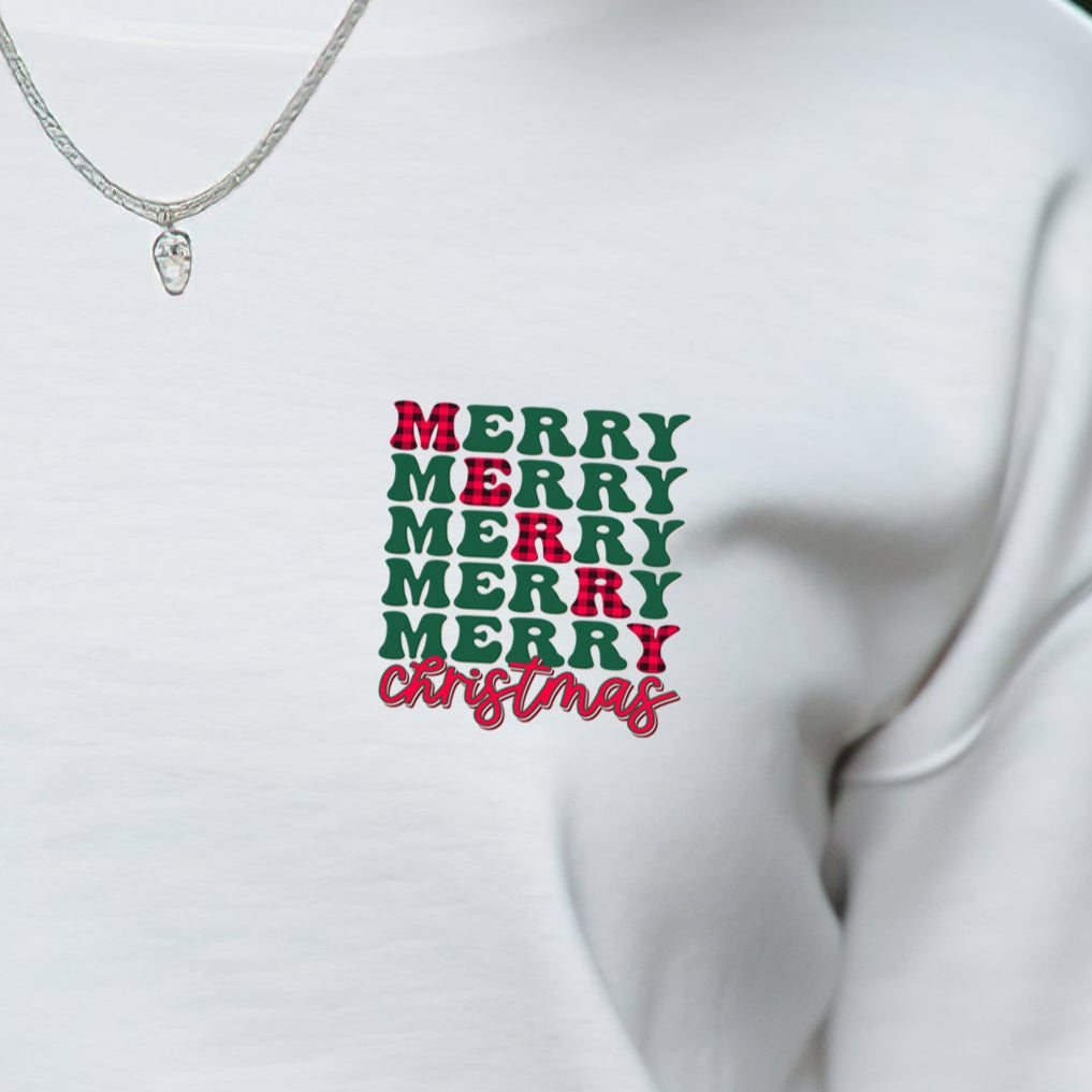 Merry Merry Merry Christmas (pocket/koozie) *full color matte clear film*- 3" wide Plastisol Screen Print Transfer