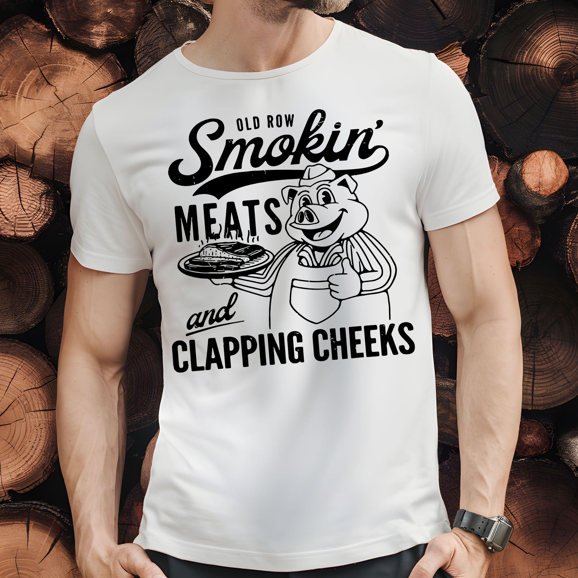 Old Row Smokin' Meats and Clapping Cheeks- Single Color (black)- 11.5" wide Plastisol Screen Print Transfer