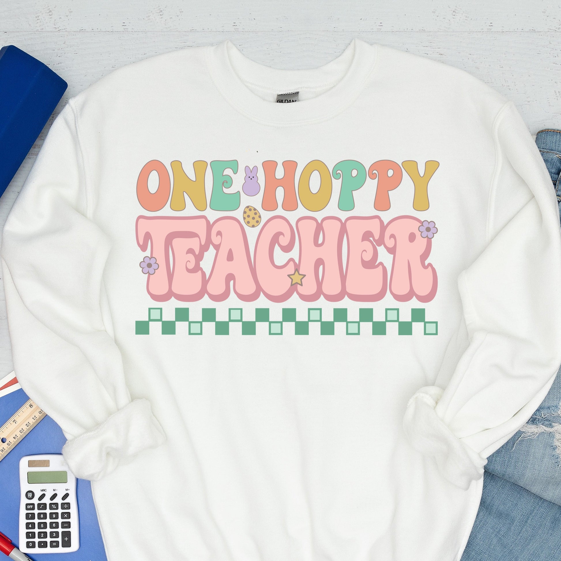 One Hoppy Teacher- *full color matte clear film*- 11.5" wide Plastisol Screen Print Transfer