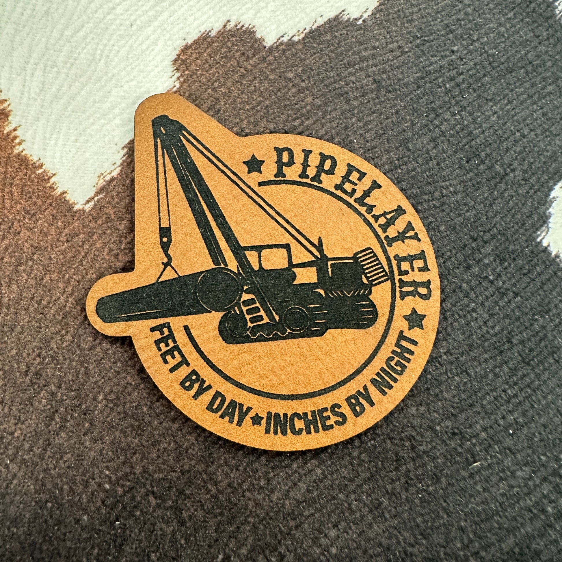 Pipelayer- Feet By Day, Inches By Night- 2.2” wide x 2.4” tall Leatherette Patch