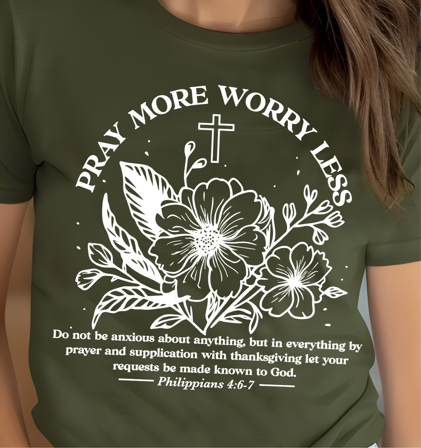 Pray More, Worry Less Phil. 4:6-7 - Single Color (white)- 11.5" wide Plastisol Screen Print Transfer