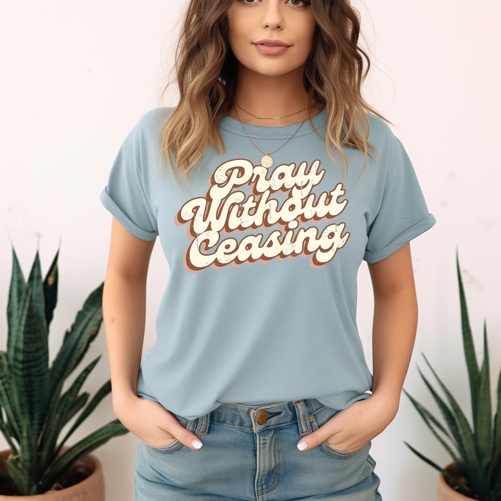 Pray Without Ceasing- *full color matte clear film*- 11.5" wide Plastisol Screen Print Transfer