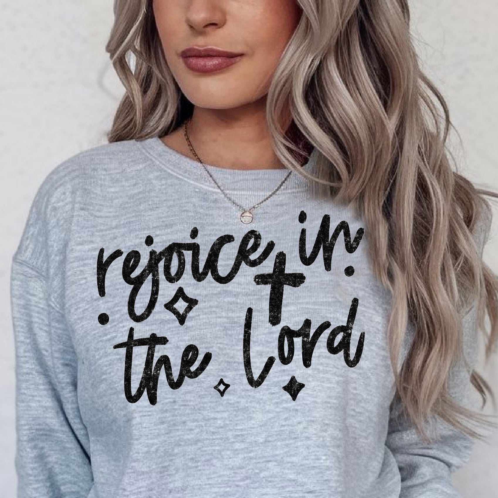 Rejoice in the Lord- Single Color (black)- 11.5” wide Single Color Transfer