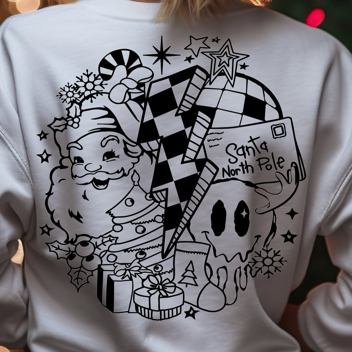 Retro Christmas- Single Color (black)- 11.5" wide Plastisol Screen Print Transfer