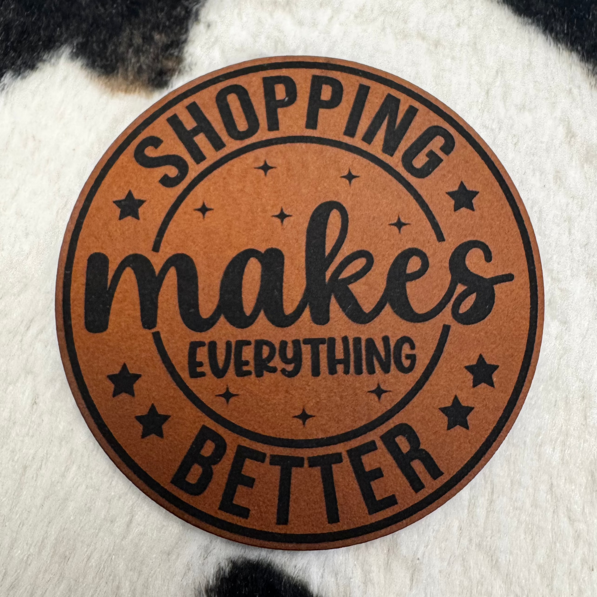 Shopping Makes Everything Better- 2.45” round Leatherette Patch