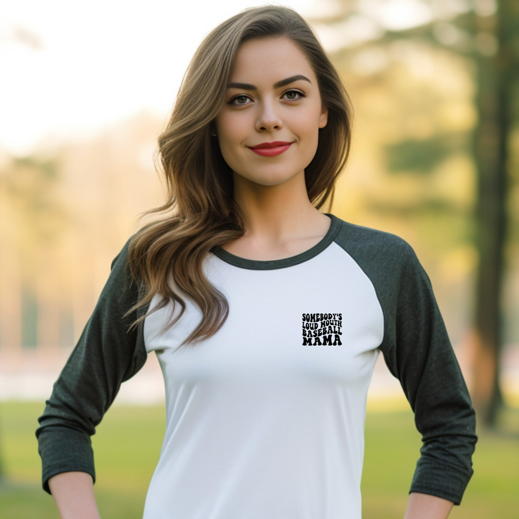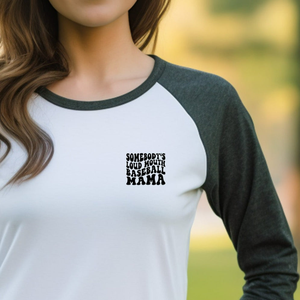 Somebody's Loud Mouth Baseball Mama (Pocket/Koozie)- Single Color (black)- 3" wide Plastisol Screen Print Transfer