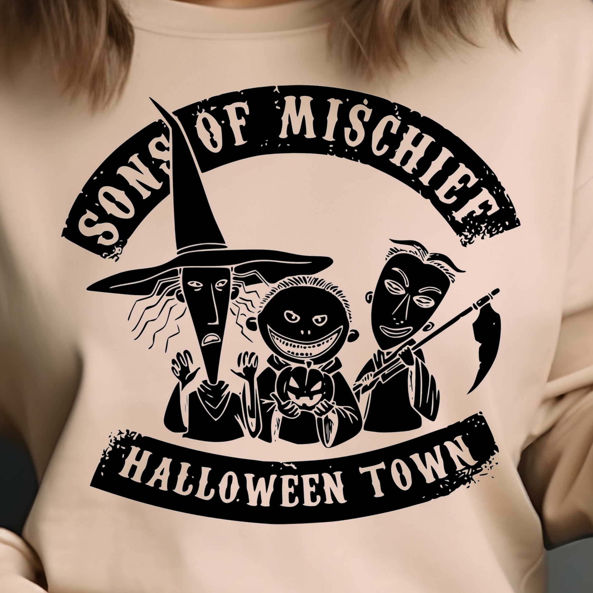 Sons of Mischief- Halloween Town- Single Color (black)- 11.5" wide Plastisol Screen Print Transfer